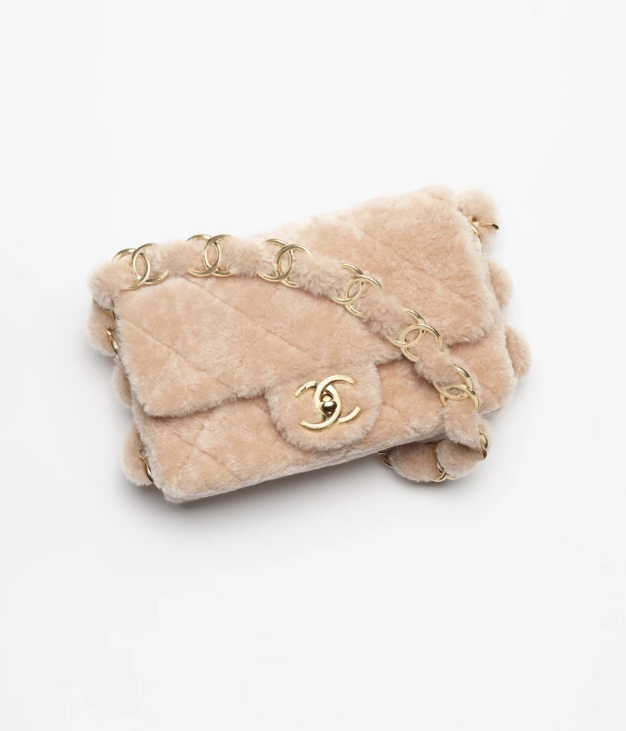 During the fall and winter seasons, I eagerly anticipate donning cozy shearling coats adorned with plush fur. Chanel’s iconic bag collectsion also experiences a delightful transformation with the incorporation of shearling. This material lends a soft elegance to the Classic diamond pattern, complemented by a wide shearling strap with double ‘C’ chain. Chanel enthusiasts, prepare for another wave of excitement!