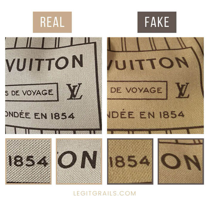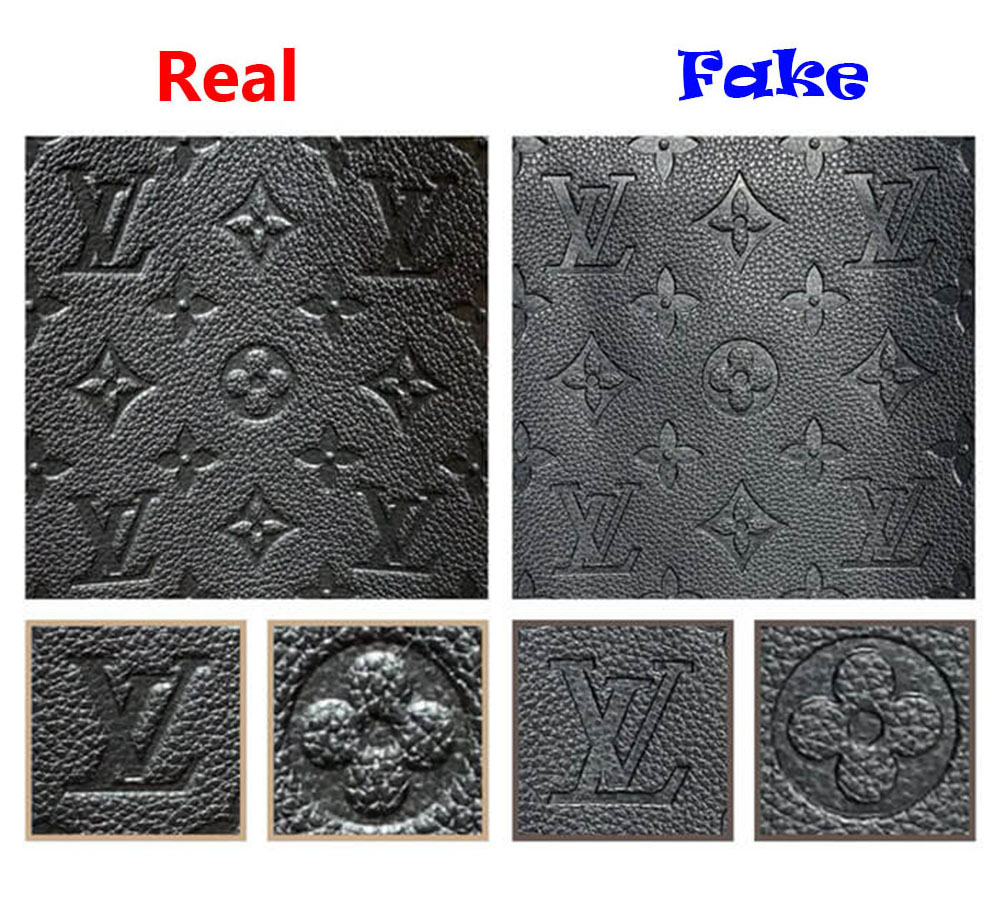 Another crucial factor to take into account is the caliber of text printing. Upon comparison, it becomes evident that the genuine Louis Vuitton emblem showcases more substantial and slightly discolored characters, whereas the fake LV logo exhibits a thinner typeface with an orange tint.