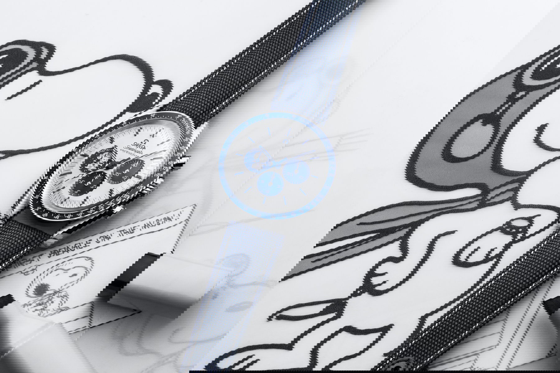 On the inside of the blue nylon strap, a trajectory of the Apollo 13 space ship can be seen, and above Snoopy’s capsule are the words “Eyes on the Stars.” The watch houses the brand’s Co-Axial Master Chronometer Caliber 3861 with Master Chronometer certification from METAS (the Swiss Federal Institute of Metrology).