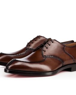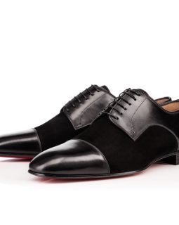Christian Louboutin Men Derby: A derby is a style of boot or shoe characterized by quarters with shoelace eyelets that are sewn on top of the vamp. This construction method, also known as “open lacing”, contrasts with that of the oxfords.
