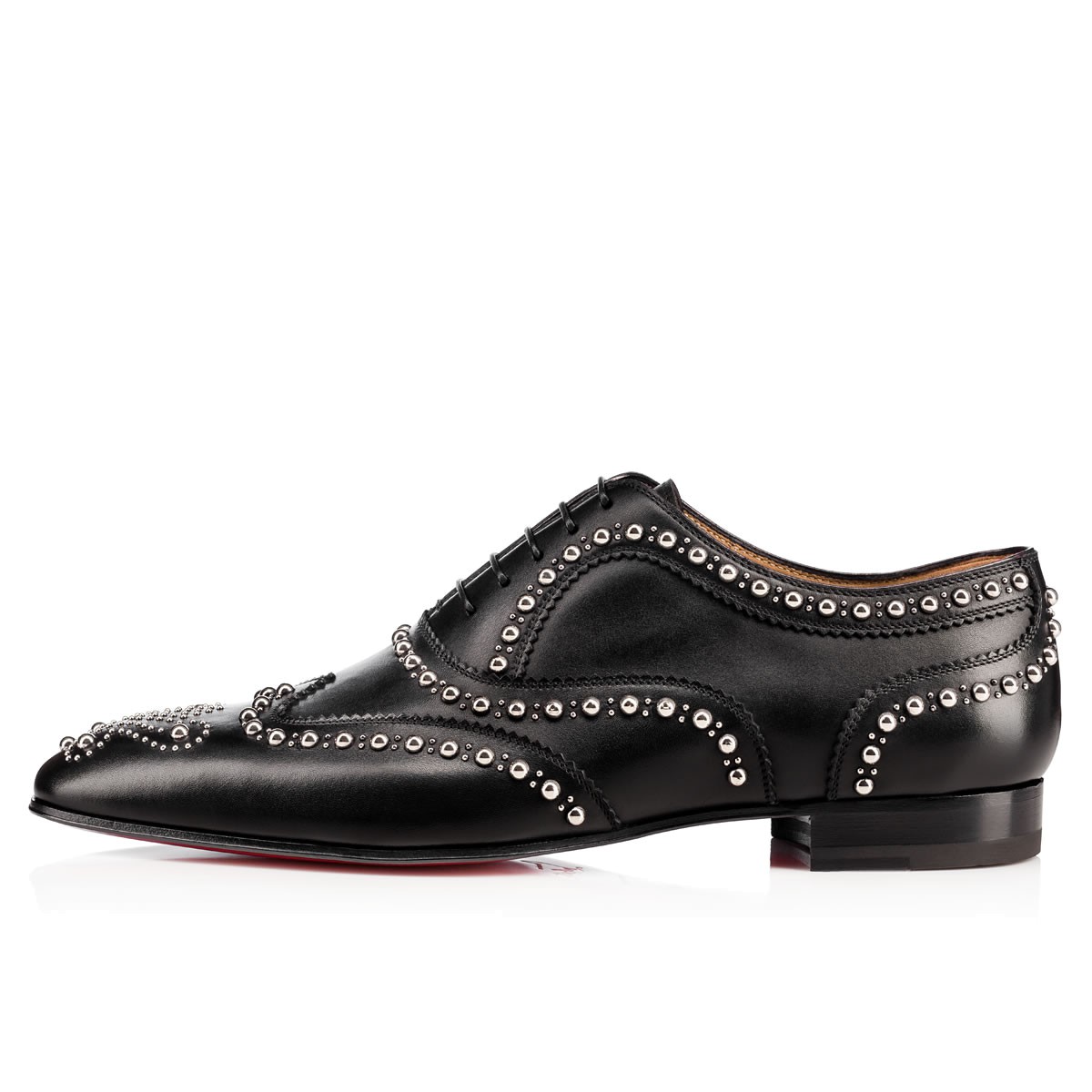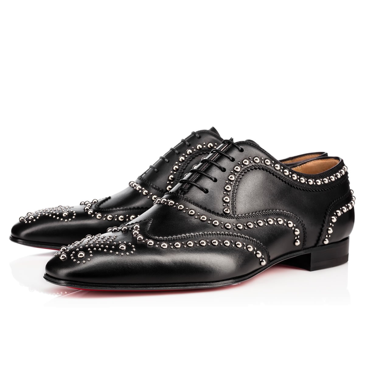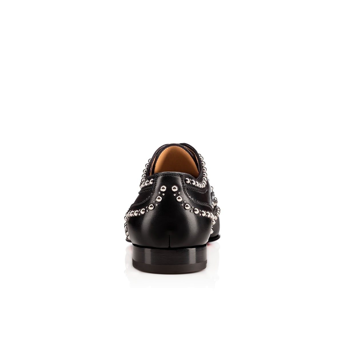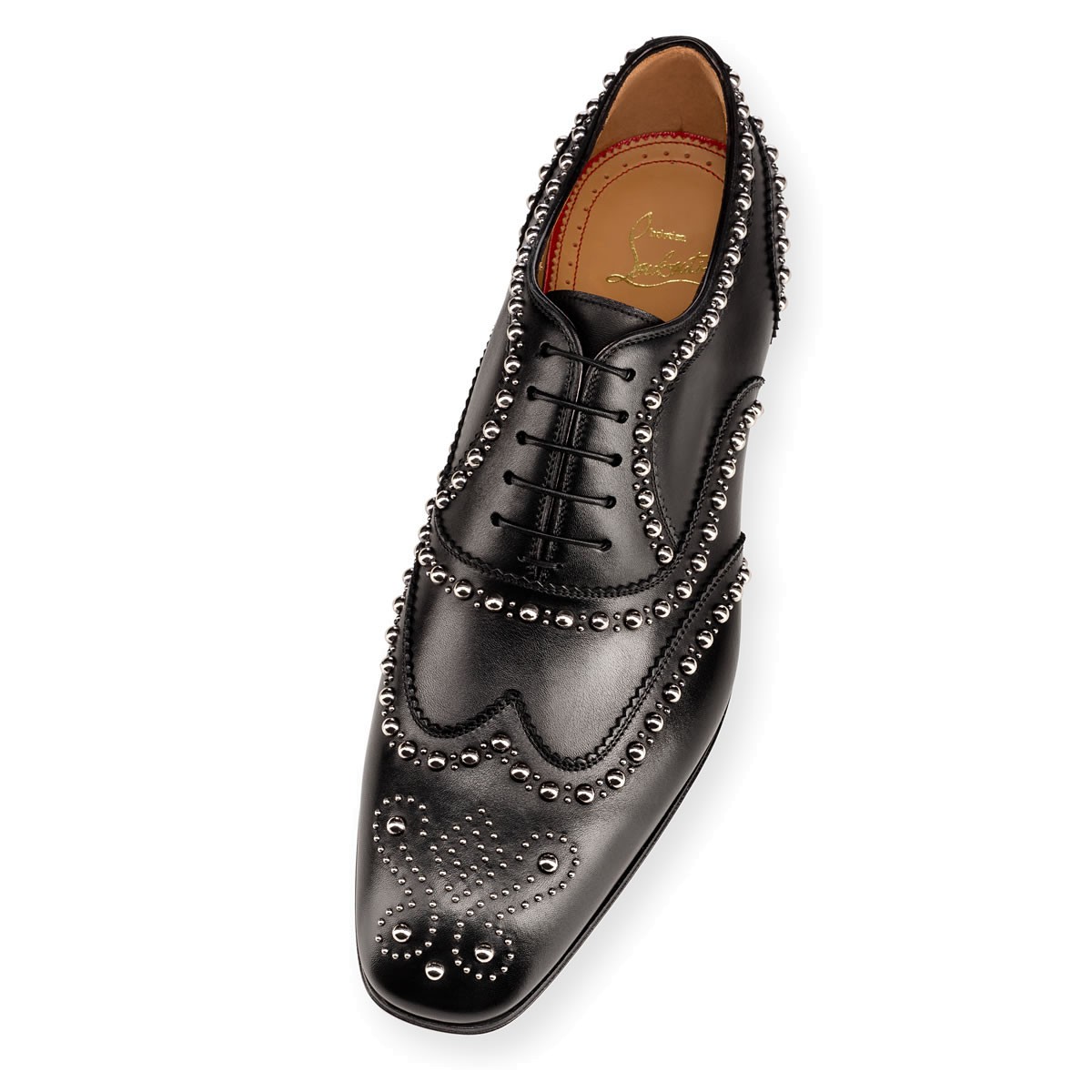 “Charlie Clou Flat” brings turn-of-the-century charm back to men’s footwear. Accented in an eye-catching display of metallic studs and dots, his square toe box is further embellished in a decorative feature that adds a touch of refinement to your suited styles.