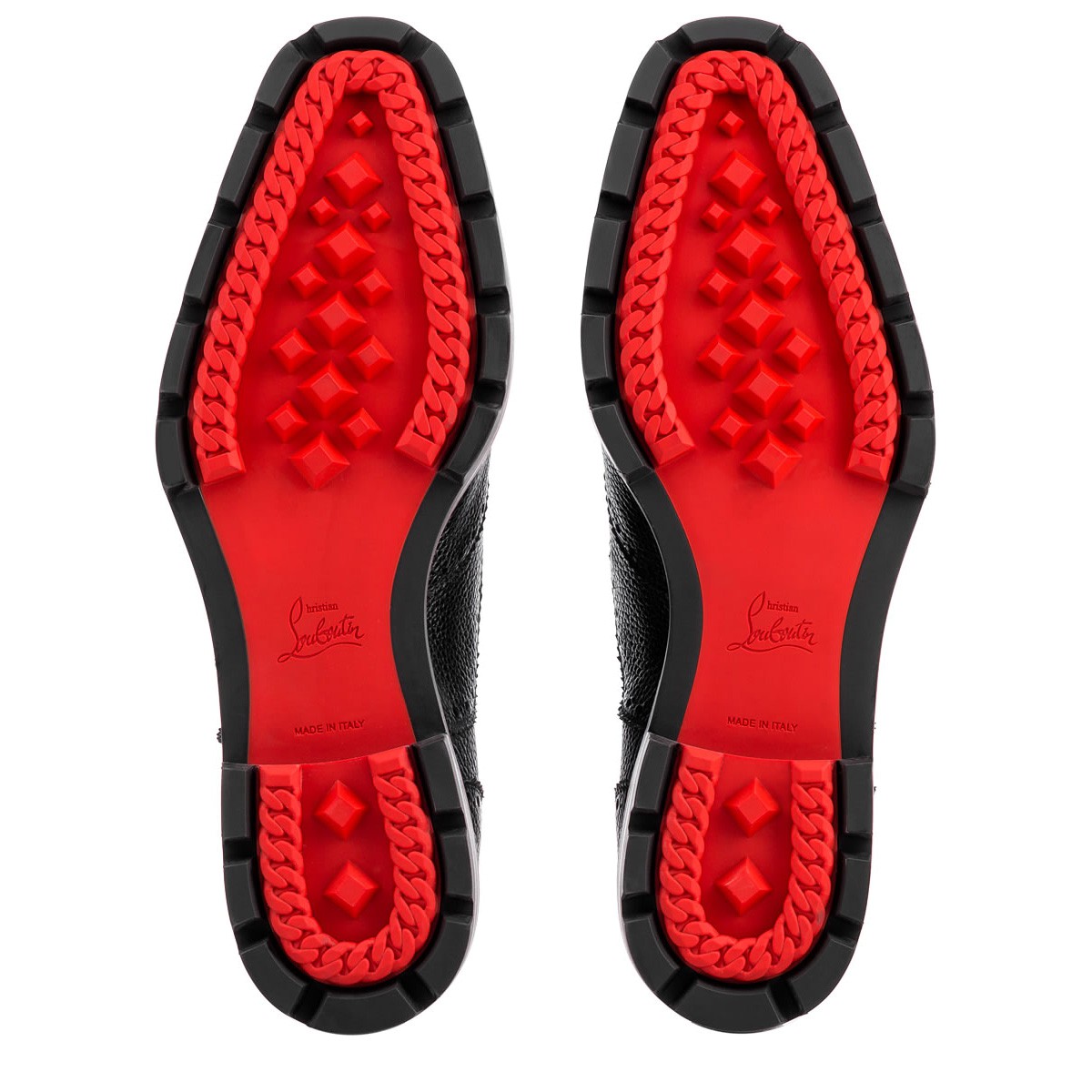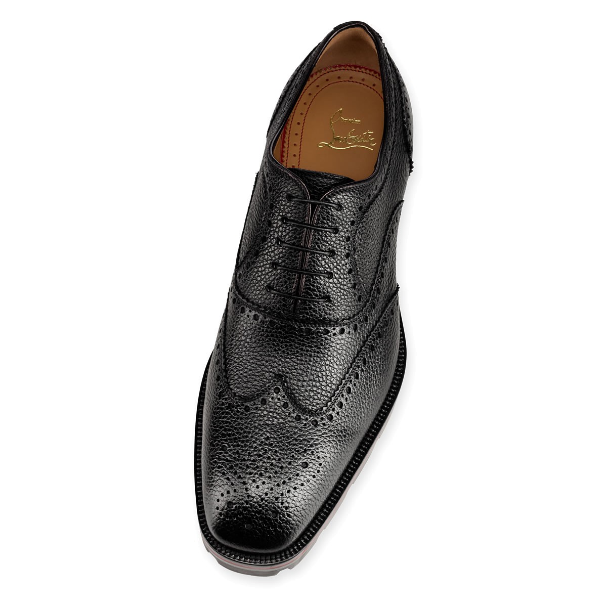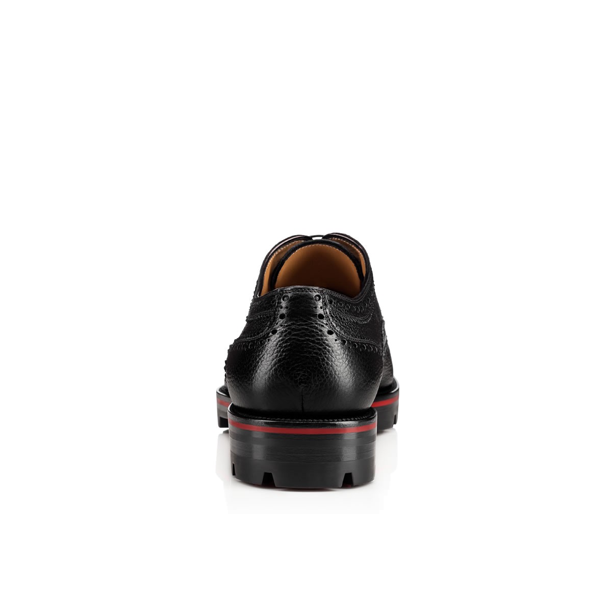 “Charlie Me Flat” rides the line between ‘sophisticated’ and ‘casual.’ In black agora leather with decorative broguing and a Loubi red lined lug sole, this pair is a must-have for the city dweller.