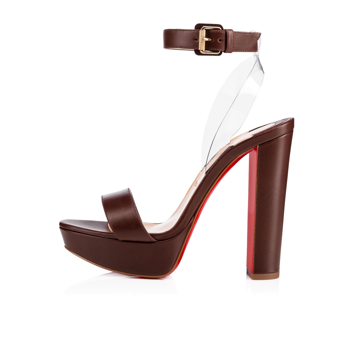 Rising sky-high, “Cherrysandal” dazzles with a hint of illusion. Featuring a transparent PVC slingback, this 140mm platform sandal in nude no. 6 is a minimalist silhouette with high impact.