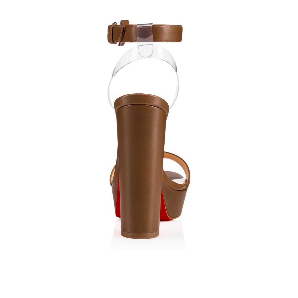 Rising sky-high, “Cherrysandal” dazzles with a hint of illusion. Featuring a transparent PVC slingback, this 140mm platform sandal in nude no. 5 is a minimalist silhouette with high impact.