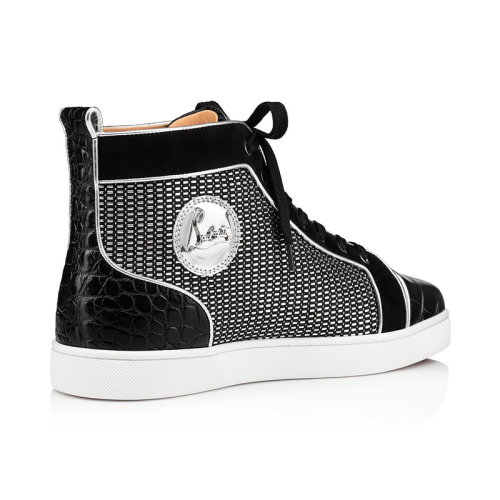 Christian Louboutin Replica Men’s Black Louis Orlato Croc-embossed Leather Sneaker