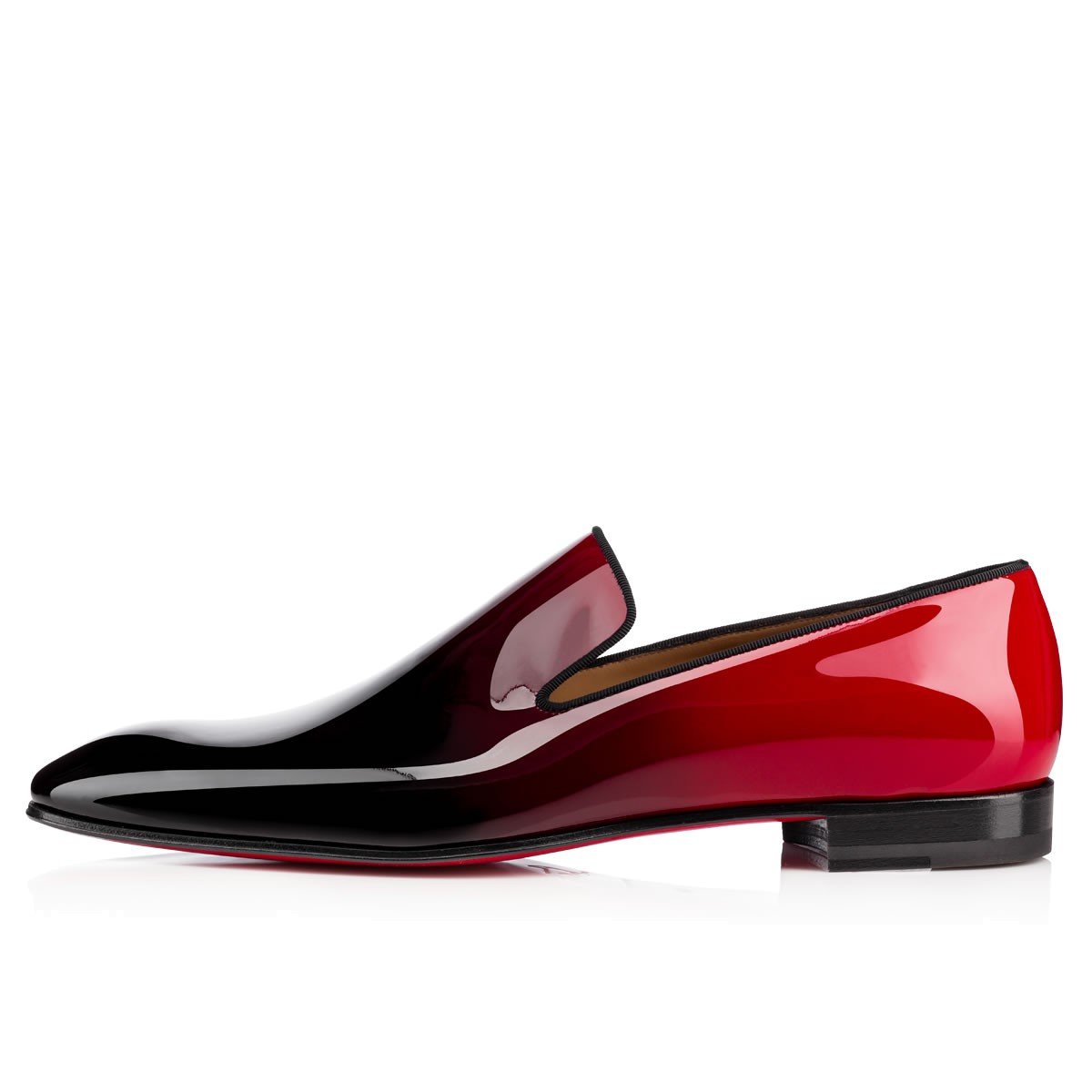 “Dandelion Flat” brings simple sophistication to your Fall/Winter ensembles. His descending toe adds a smooth and laid-back appeal to this classic silhouette. In black-to-red dégradé patent leather, he sets the standard for your look.