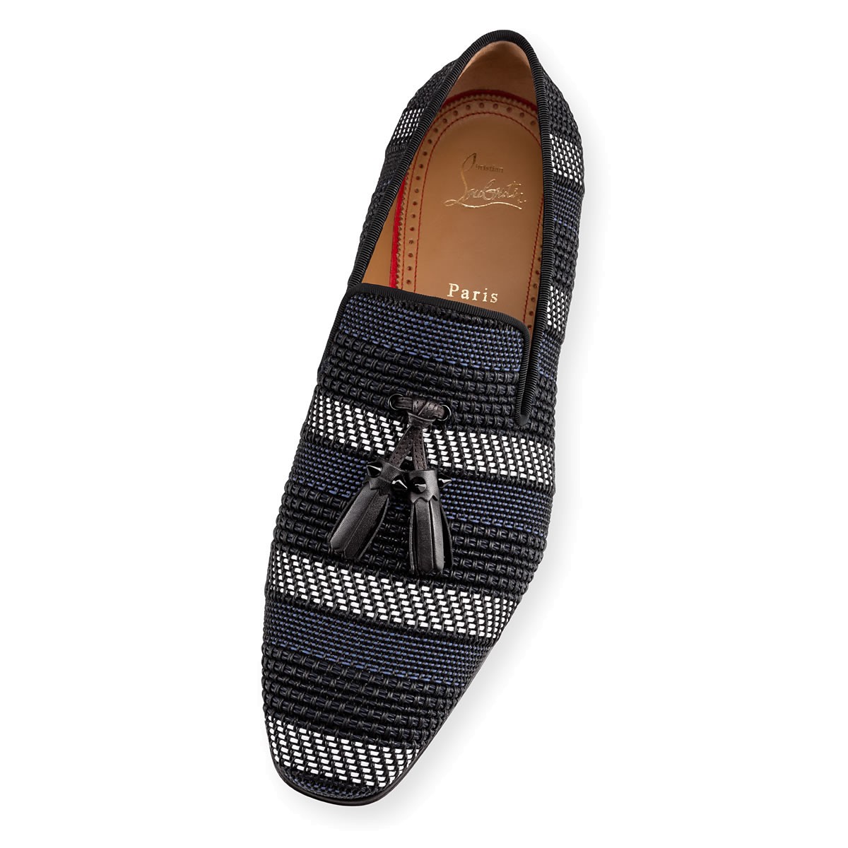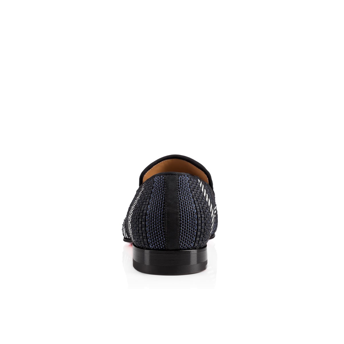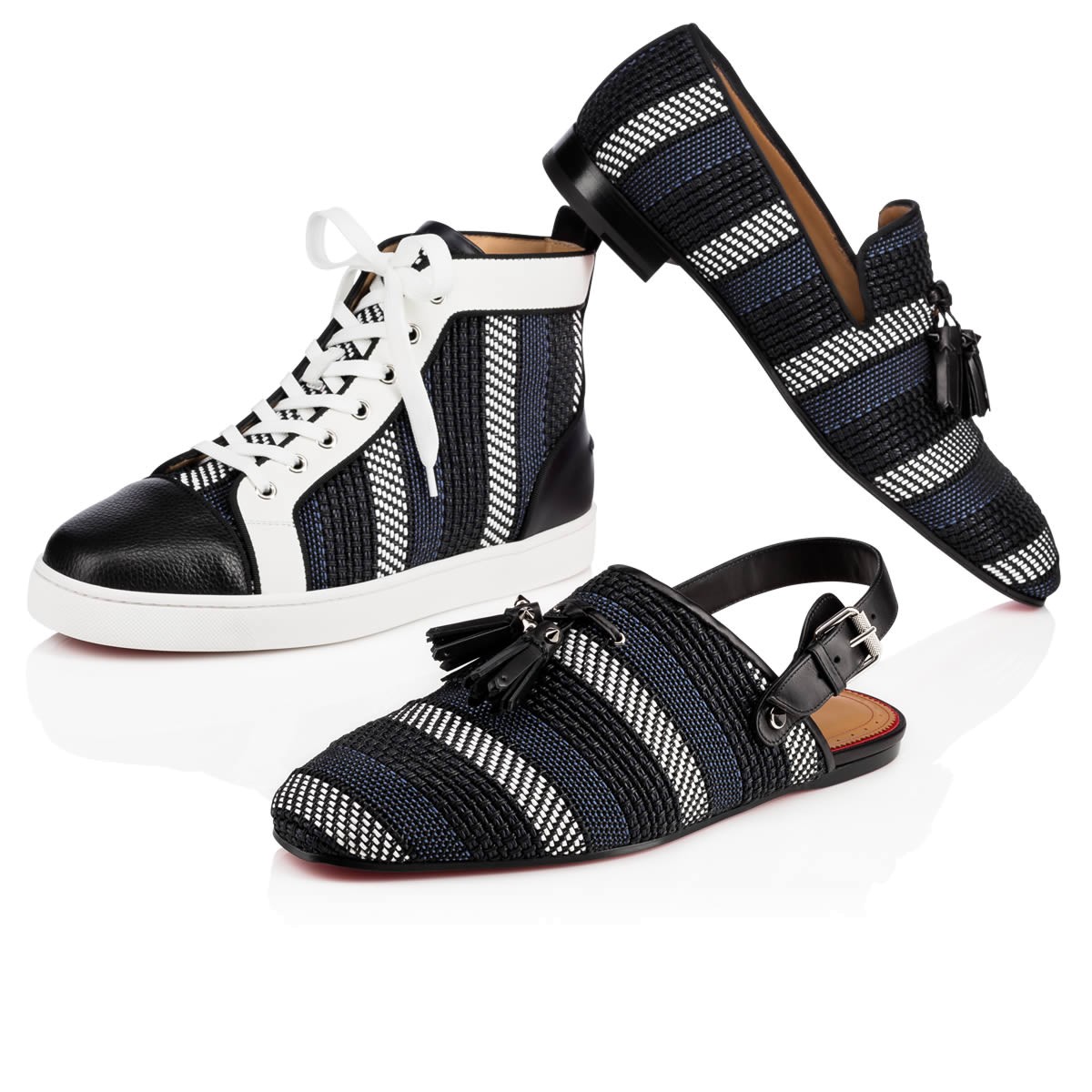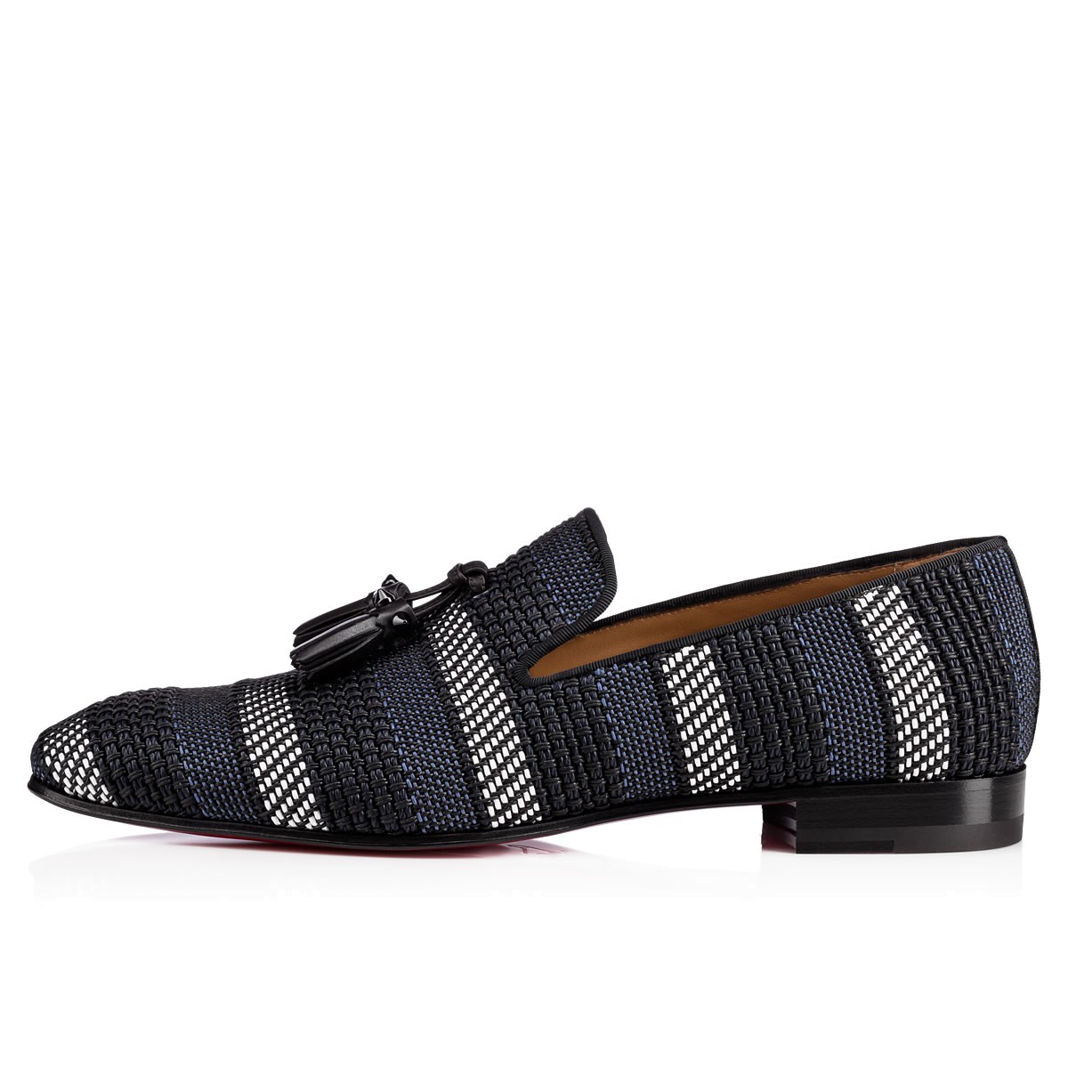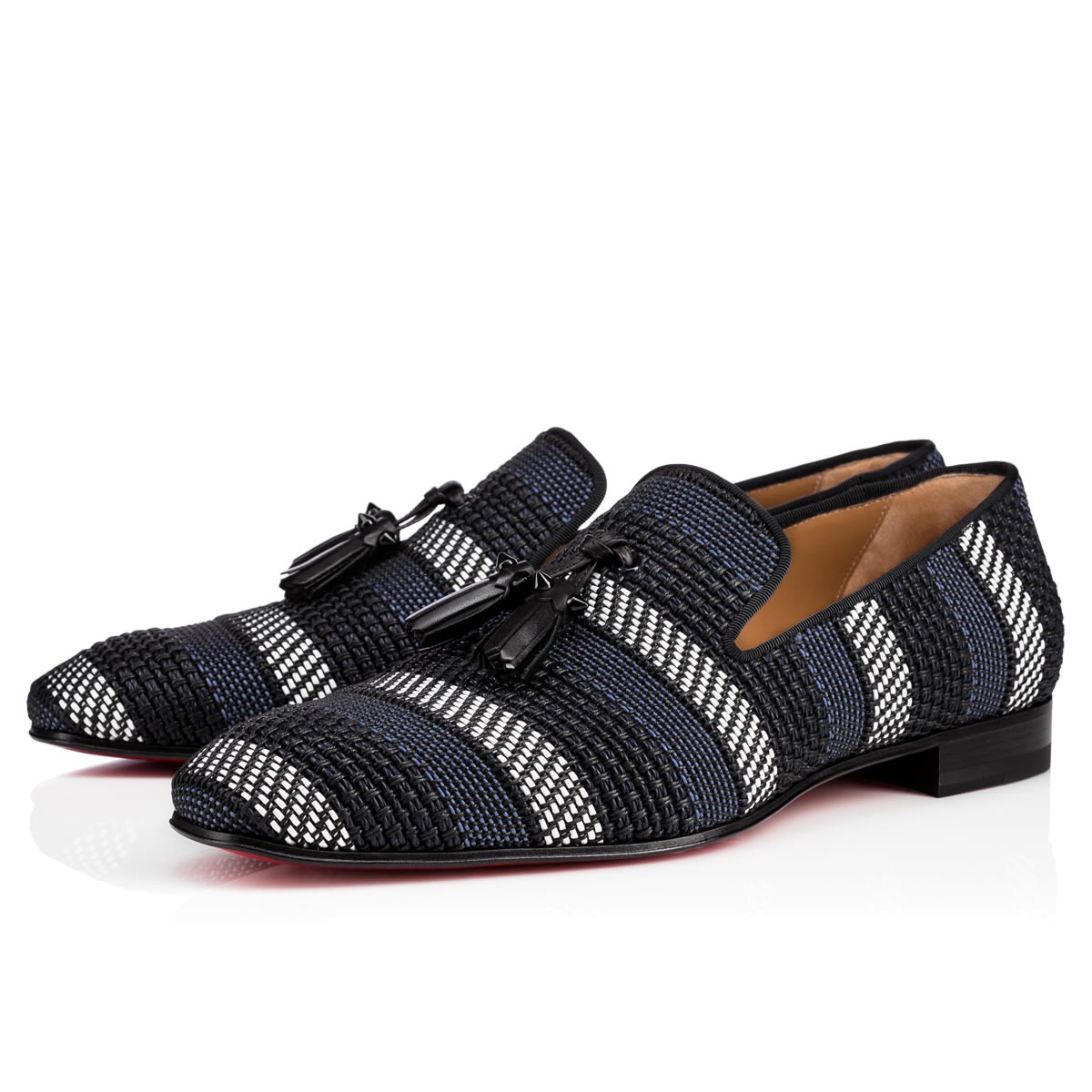 “Dandelion Tassel Flat” brings simple sophistication to your Fall/Winter ensembles. His descending toe and signature spiked tassels add a smooth and laid-back appeal to this classic silhouette. In this eye-catching navy blue and black woven bandita print, he makes an unforgettable statement.