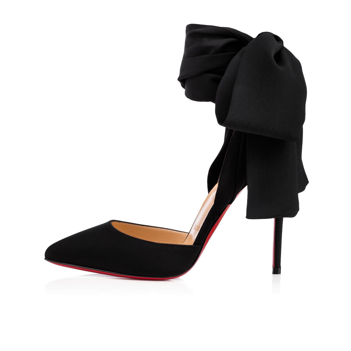 The broad wrap-around ankle ties on “Douce Du Desert” bring a sumptuous, organic feel to this elegant evening shoe. In black Crepe de Chine, this 100mm pair adds a silky texture and sensuous shape.