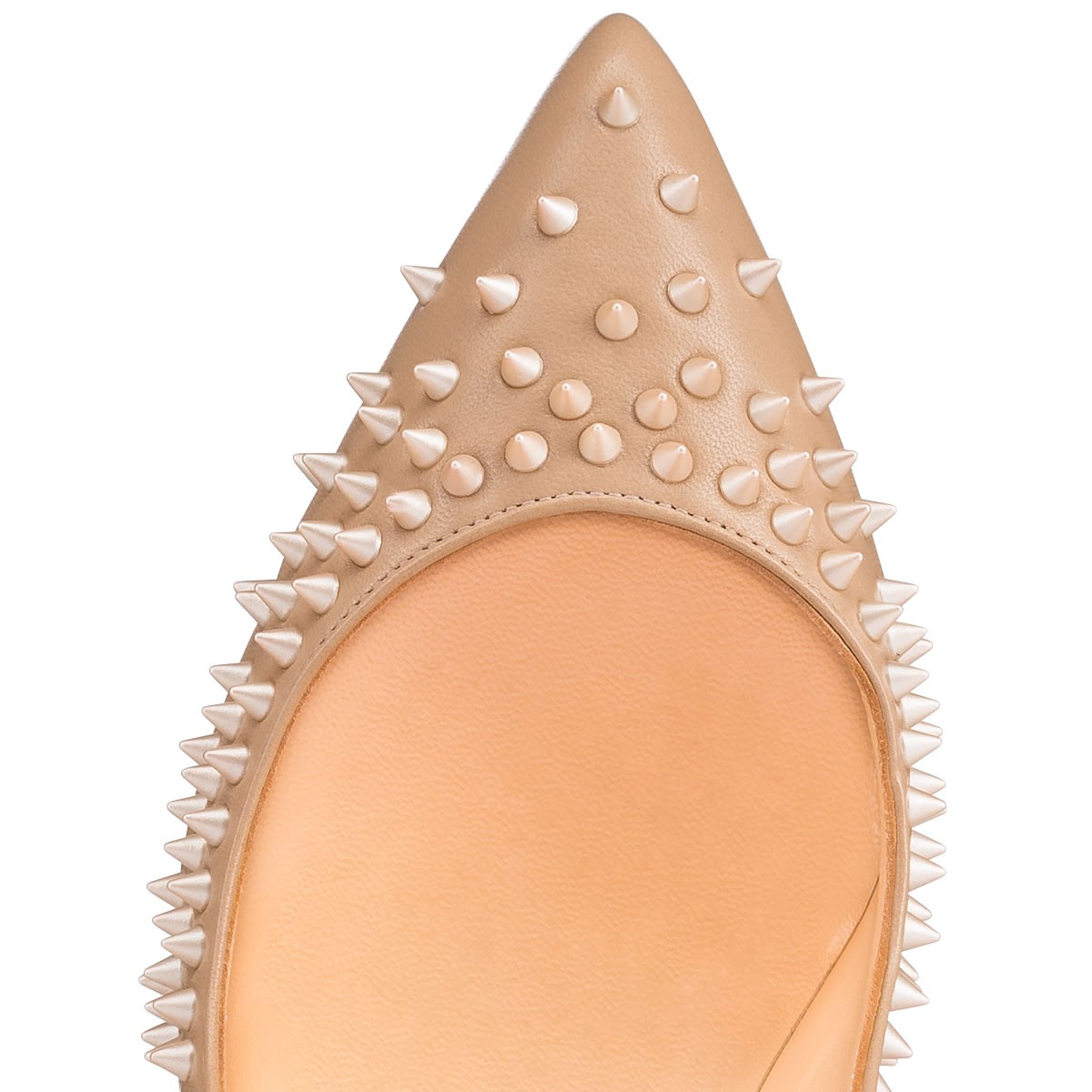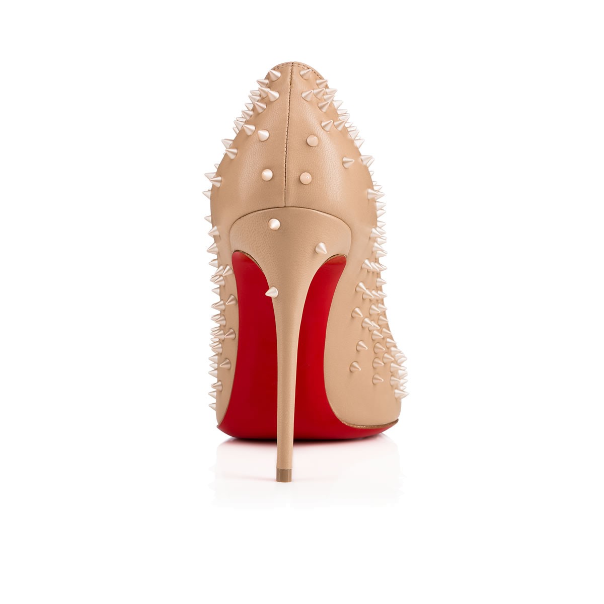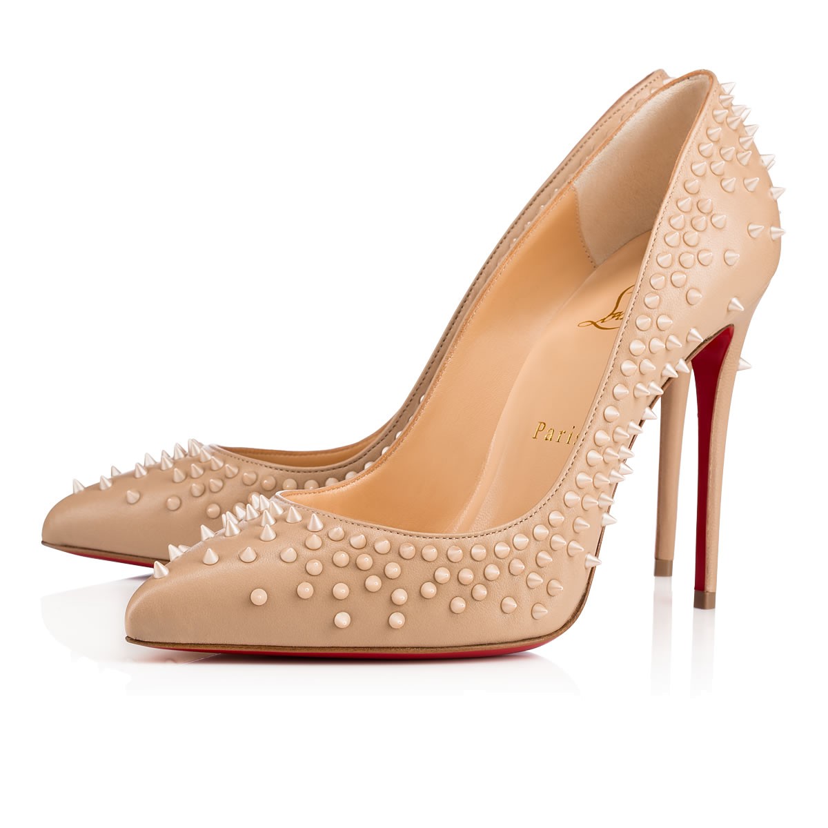 Embellished in a symphony of signature spikes, “Escarpic” makes you the rose to its thorns. In nude leather with an apricot mica spike dégradé, this 100mm pump is pure Louboutin magic.
