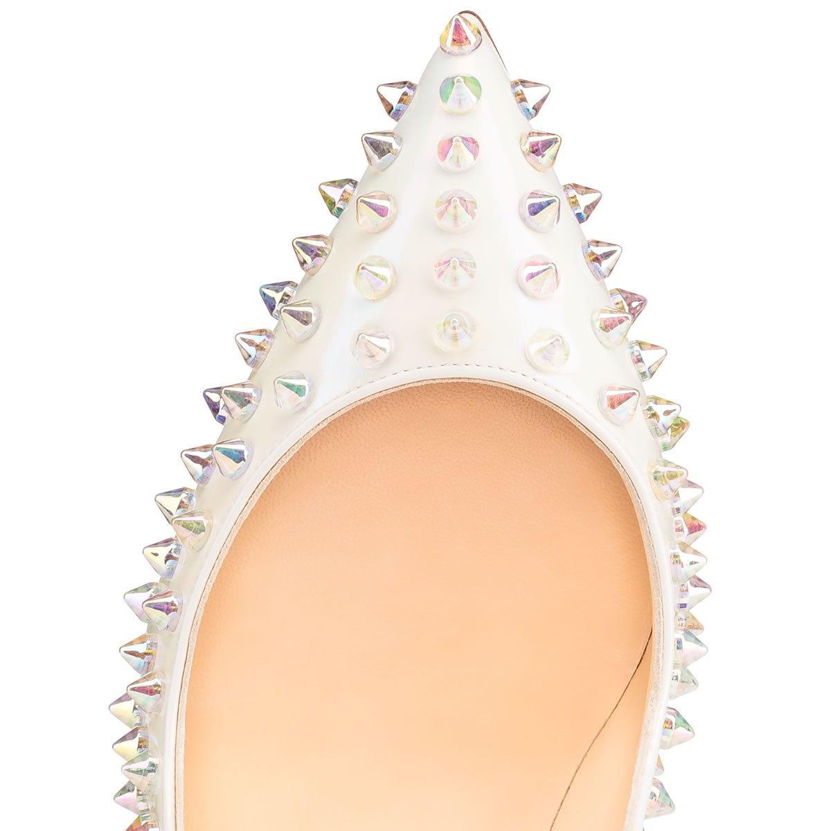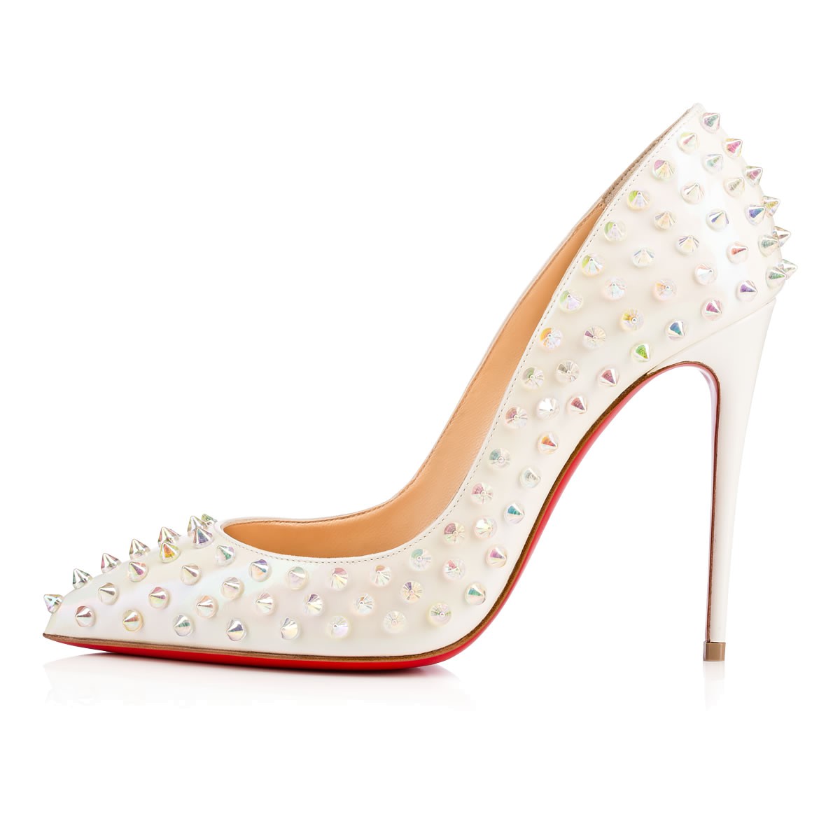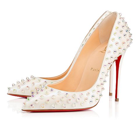 For the party girl in you, behold “Follies Spikes”. Hand-embellished in a full covering of this season’s clear ‘ab’ signature spikes, this feminine 100mm pump in opalescent white ‘ab’ patent leather is all you need to become an empress of the evening.