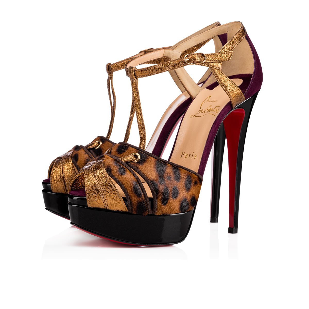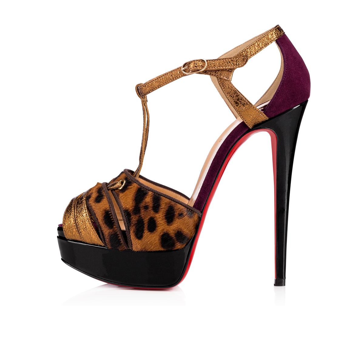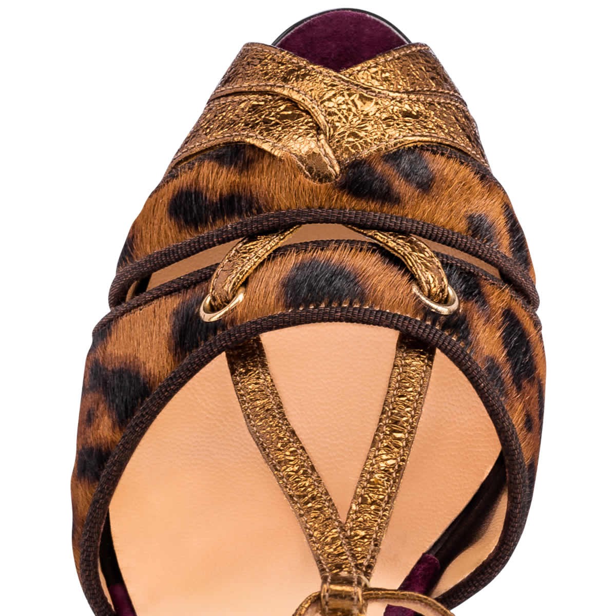 “Glennalta” brings fresh inspiration to your evening styles this season. Crafted in an architectural strap configuration, this sky-high 140mm platform sandal in dark leopard print pony hair and bronze vintage specchio leather is an effervescent party look.