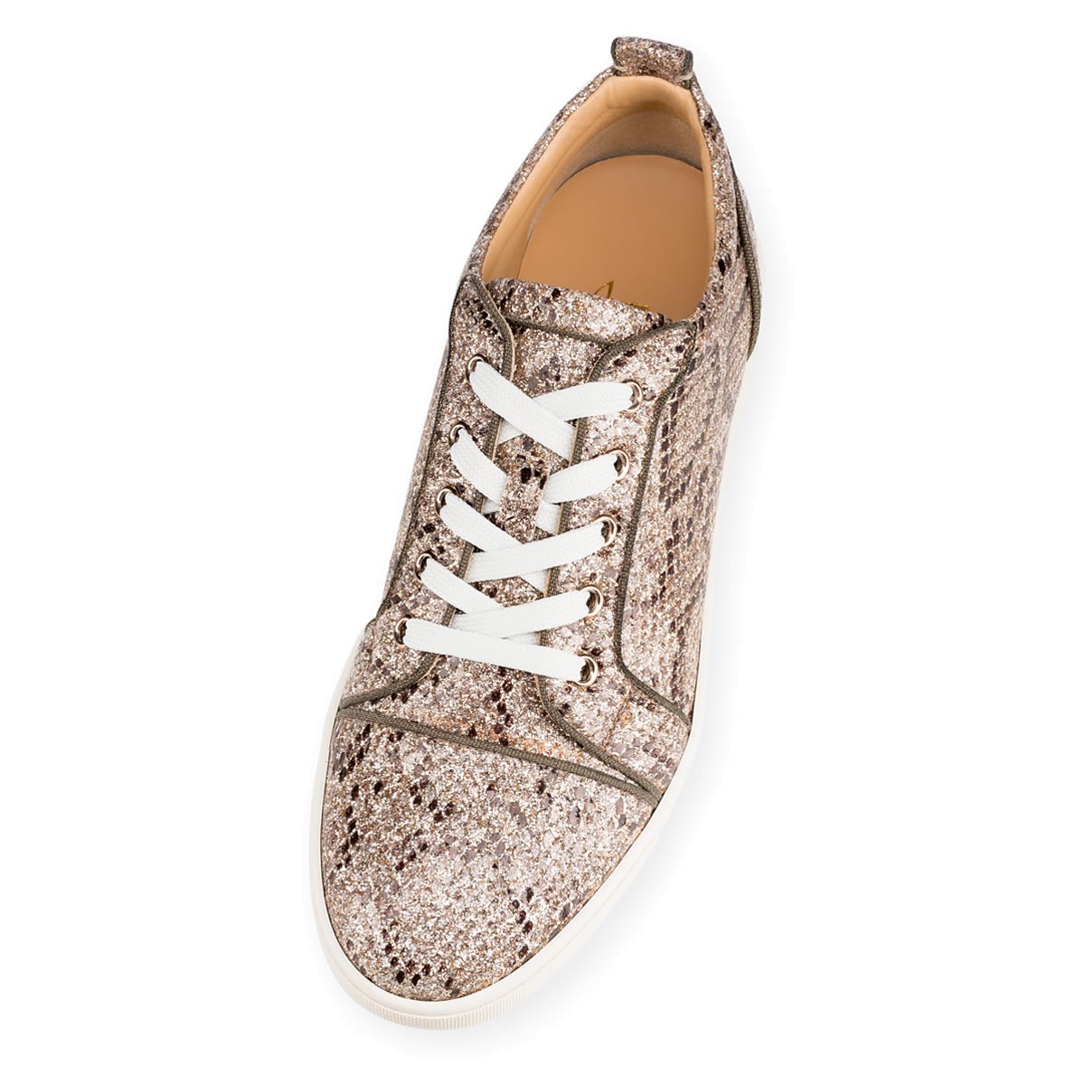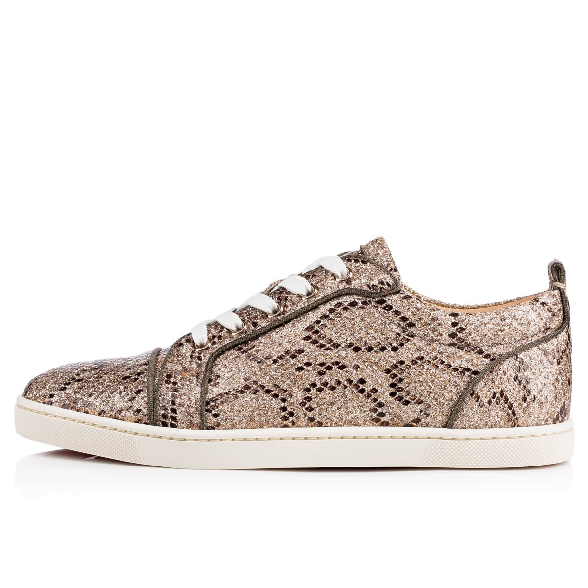 “Gondoliere Flat’s” lowtop silhouette and slender, flexible sole make her a chic and sporty addition to your wardrobe. Great for a statement off-duty look in this sumptuous glitter lacquered roccia python version, she will keep you in laid-back luxury all season long.