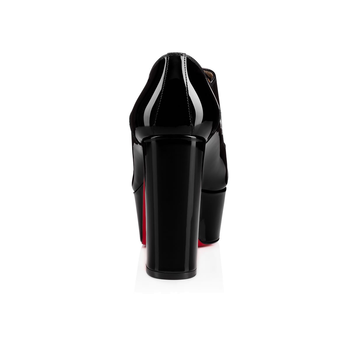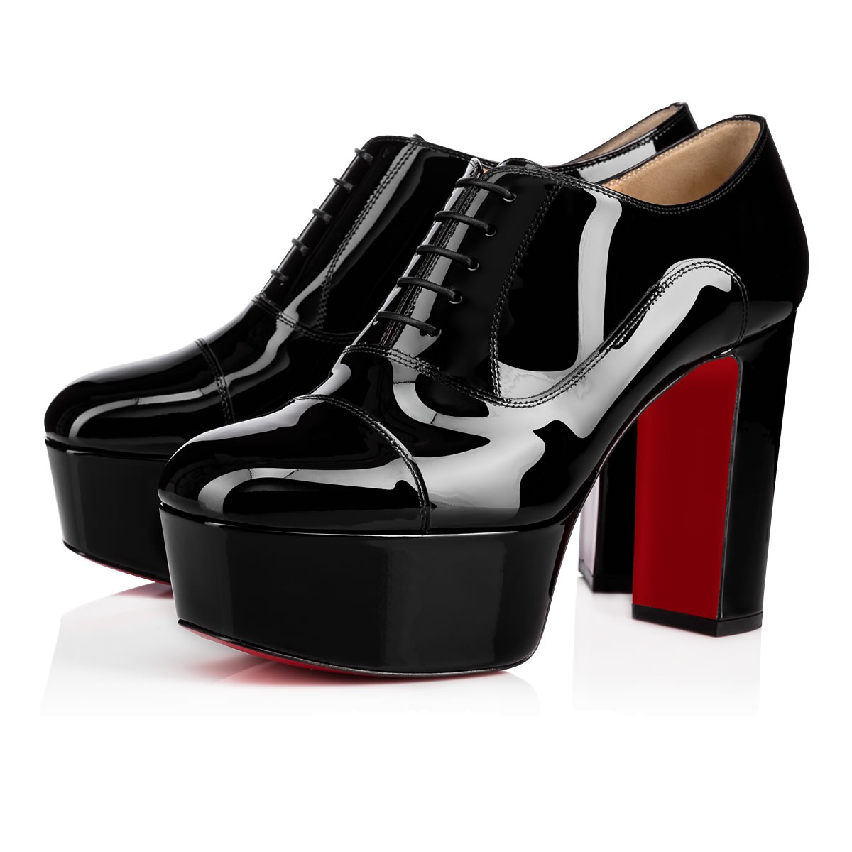 Get a ’70s power silhouette with “Goosinette”. This black patent platform oxford lace-up is finished with a 140mm block heel and takes your look from sun up to sun down.