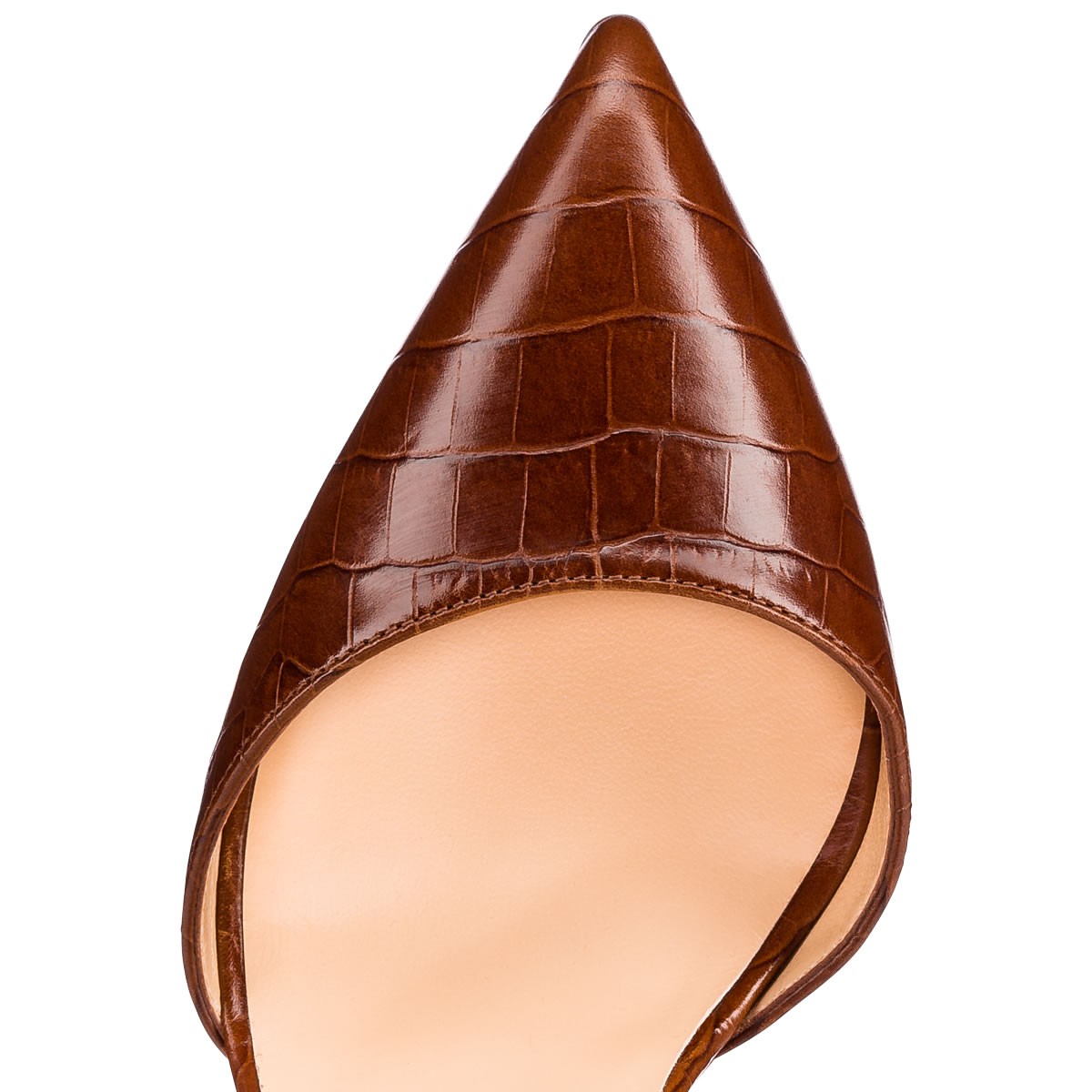 “Harler” is simply chic with her covered buckle ankle cuff and slender pointed toe. In cuoio crocodile embossed leather, this 100mm d’Orsay is a refined finish for any look.