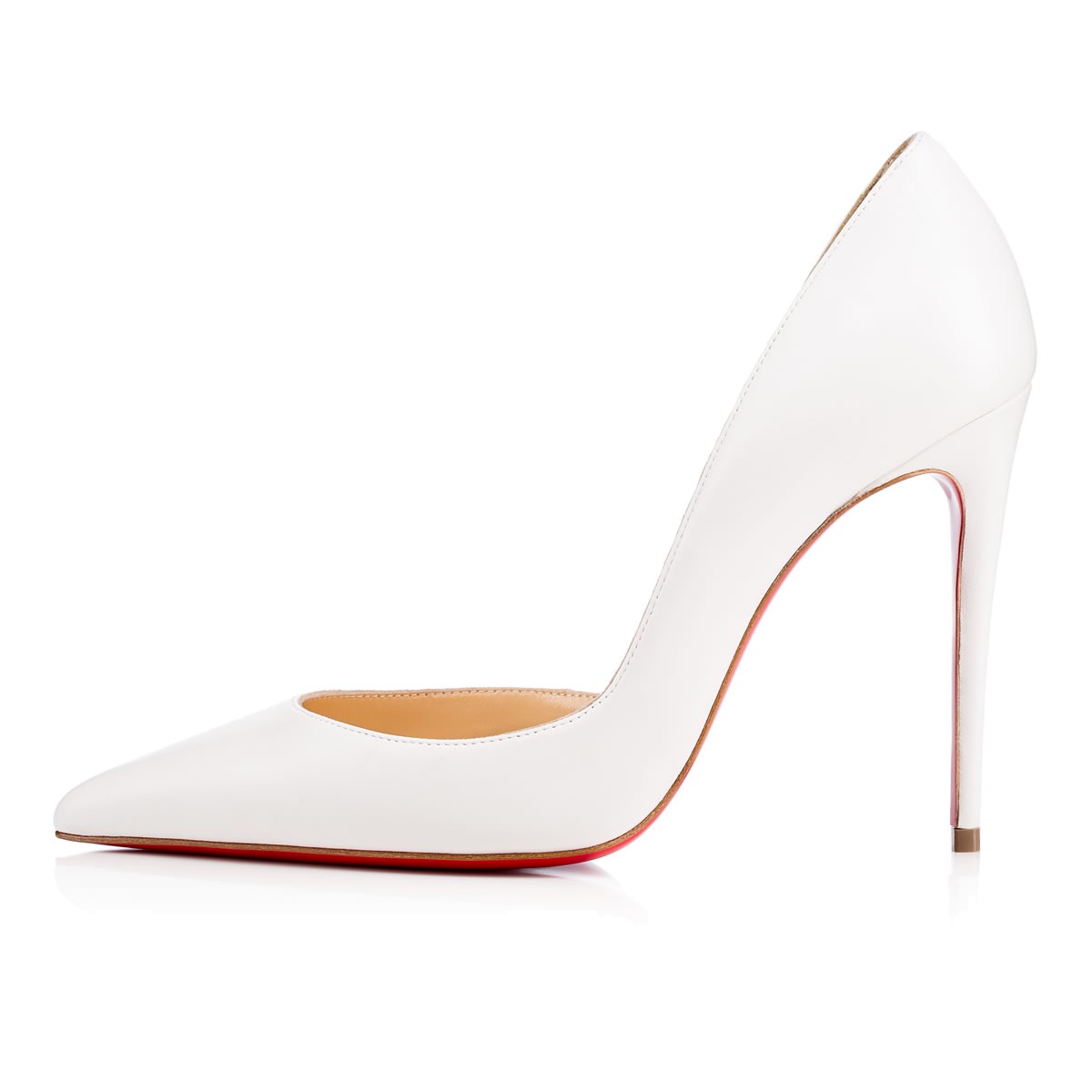 Christian Louboutin’s signature half d’Orsay, “Iriza,” is a stunning look for women who aren’t afraid to be a little bit exposed. Her cut-out vamp creates a sexy and utterly feminine shape. This 100mm latte leather version is the perfect Spring/Summer staple pump.