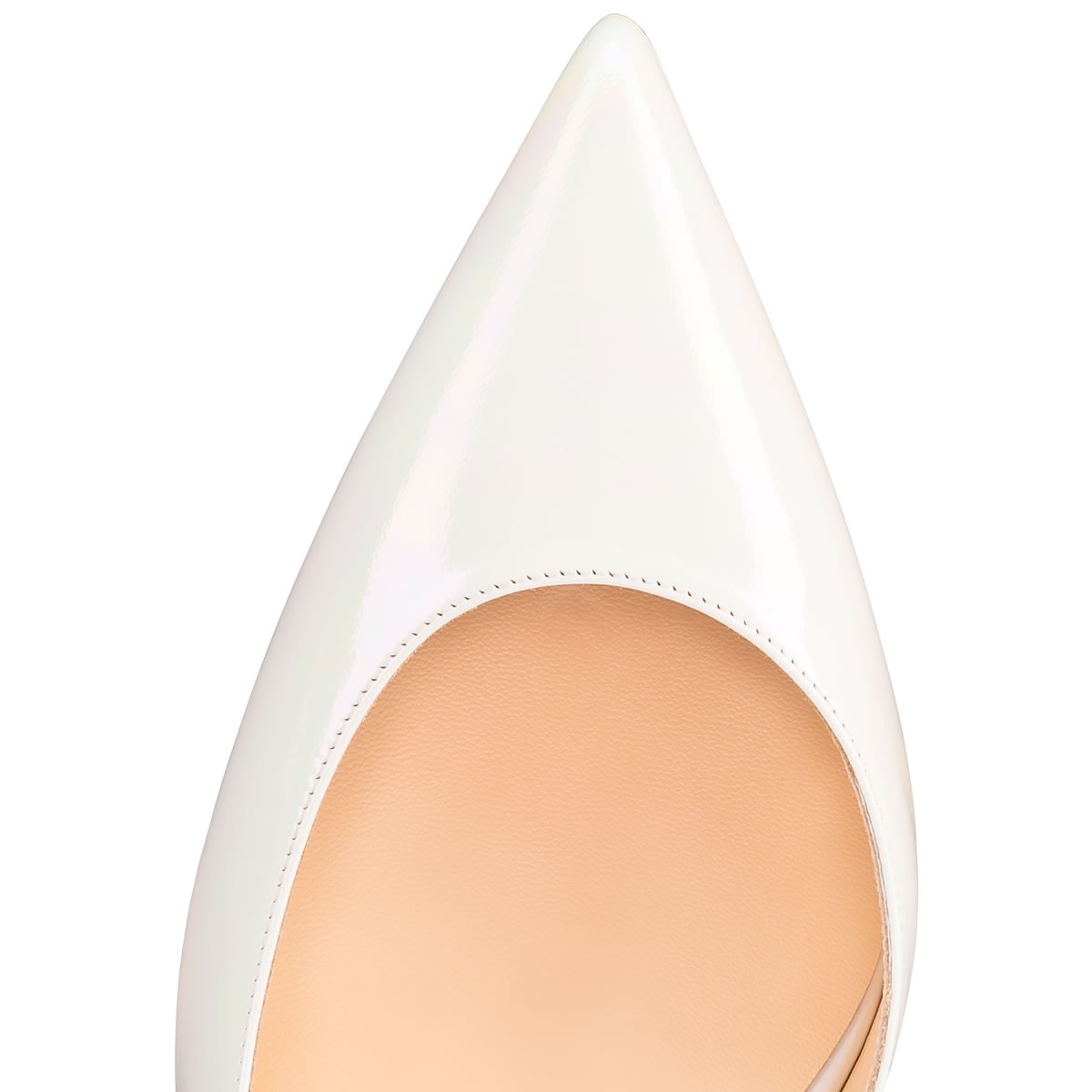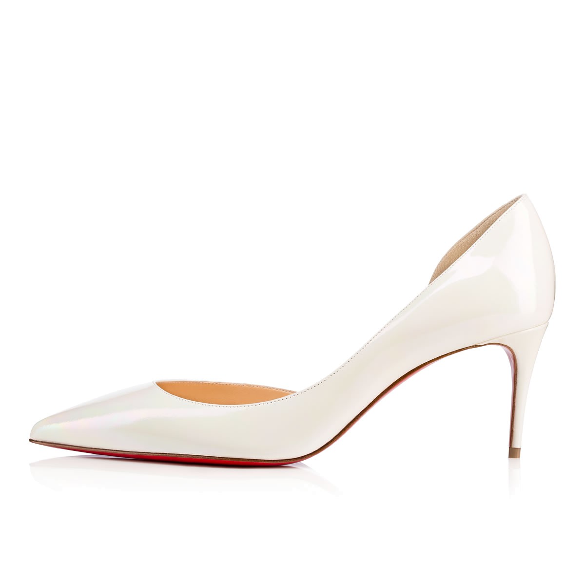 Christian Louboutin’s signature half d’Orsay, “Iriza,” is a stunning look for women who aren’t afraid to be a little bit exposed. Her cut-out vamp creates a sexy and utterly feminine shape. This 80mm opalescent ‘ab’ patent leather version is the perfect Spring/Summer accent pump.