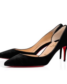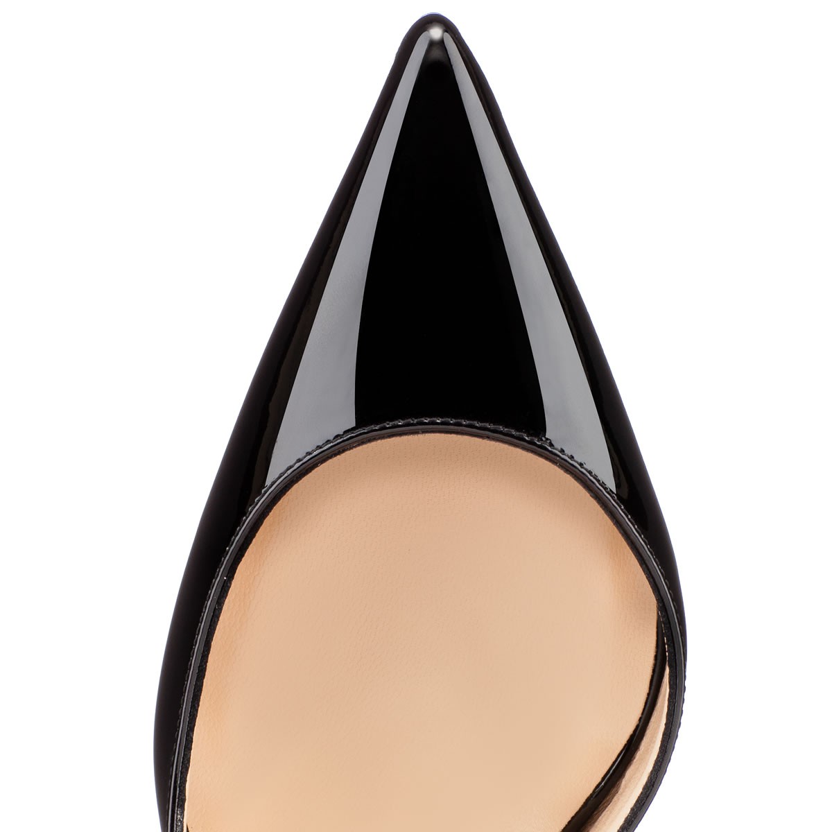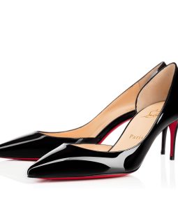 Christian Louboutin’s signature half d’Orsay, “Iriza”, is a stunning look for women who aren’t afraid to be a little bit exposed. Her cut-out vamp creates an alluring and utterly feminine shape. This 100mm black patent leather version is an all-season classic.