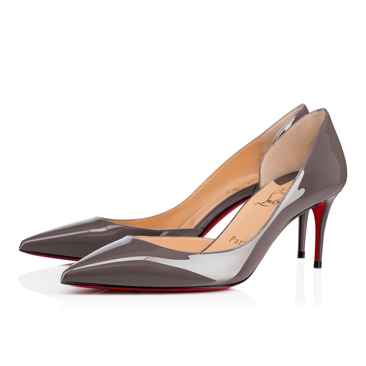 Christian Louboutin’s signature half d’Orsay, “Iriza”, is a stunning look for women who aren’t afraid to be a little bit exposed. Her cut-out vamp creates an alluring and utterly feminine shape. This 60mm or 80mm storm patent leather version is an elegant alternative to black.