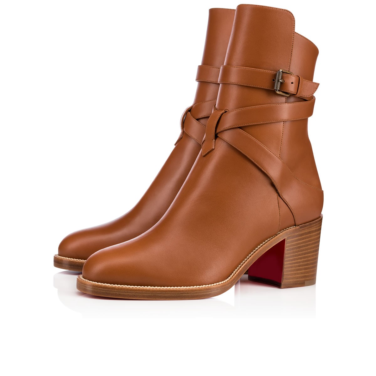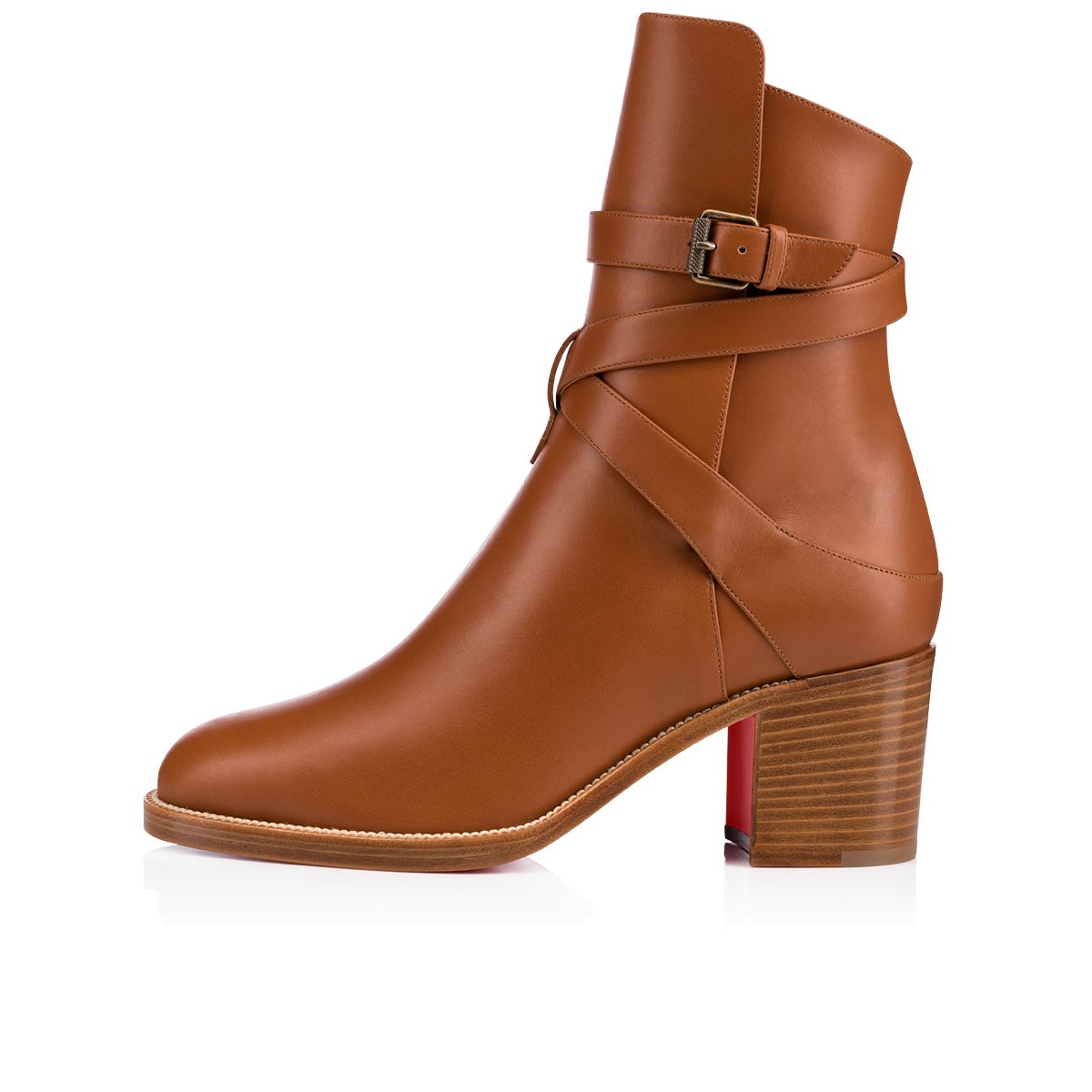“Karistrap’s” winding striated buckle strap adds a touch of leatherwork eloquence to this 80mm ankle boot. Featuring a slightly higher front panel, this casual-chic cuoio leather style is a closet catch this season.