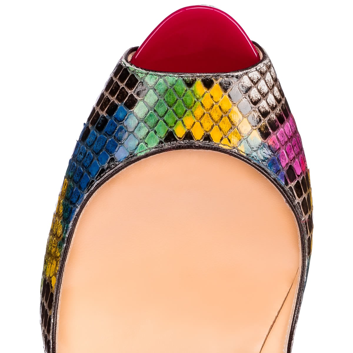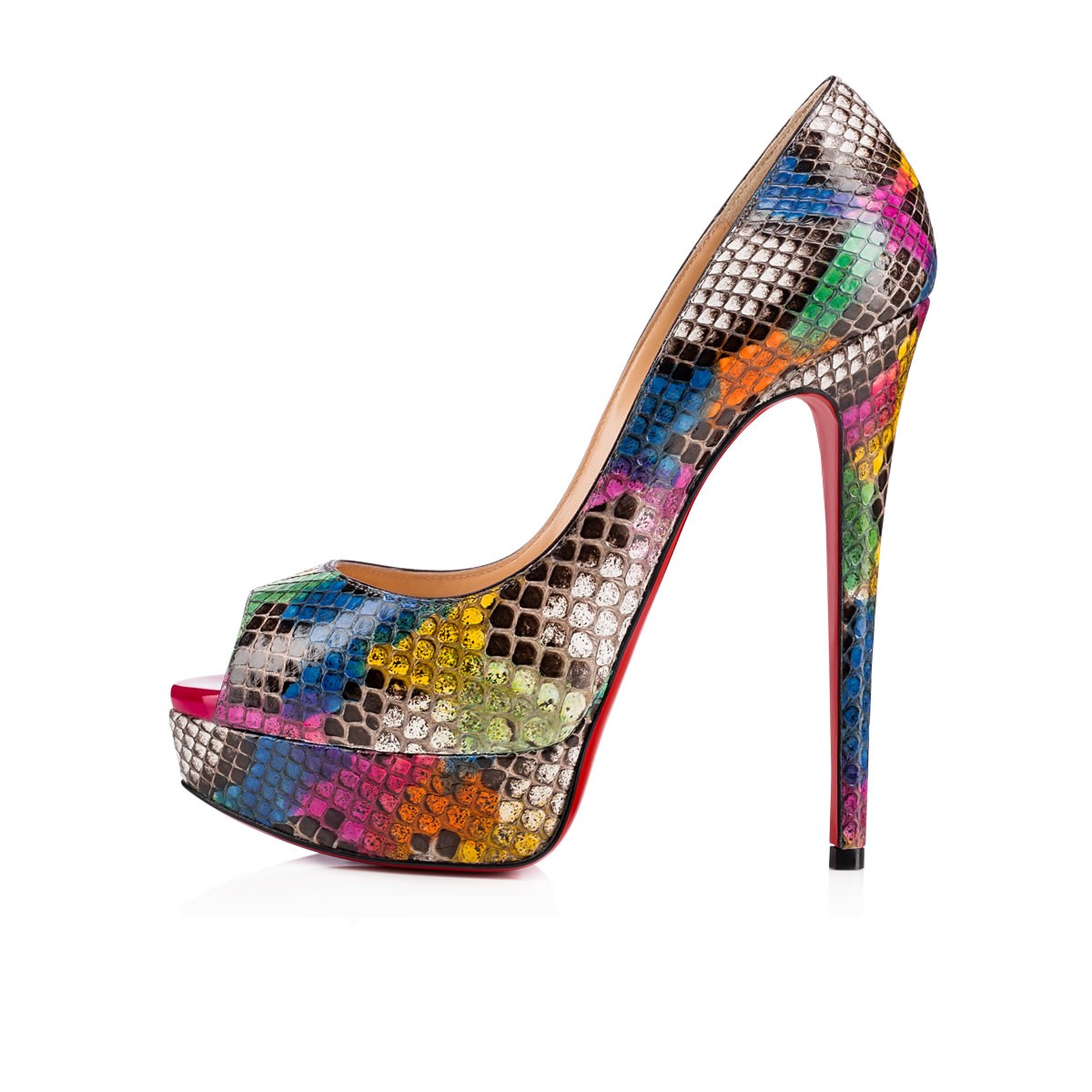 With her jaw-dropping height and luxurious shape, “Lady Peep” seduces even the toughest of critics. Her substantial platform reduces the plunge of the dramatic 150mm pitch, allowing you to walk with confidence. Slip on this pair in hand painted ultra rose kaa python for a truly sensational finish.