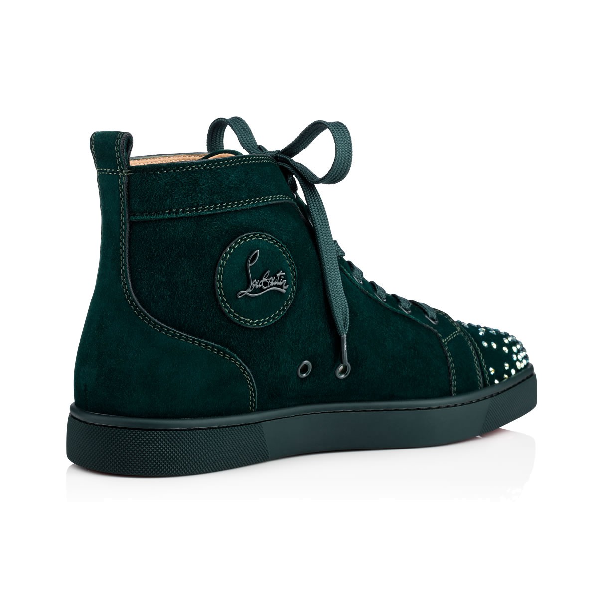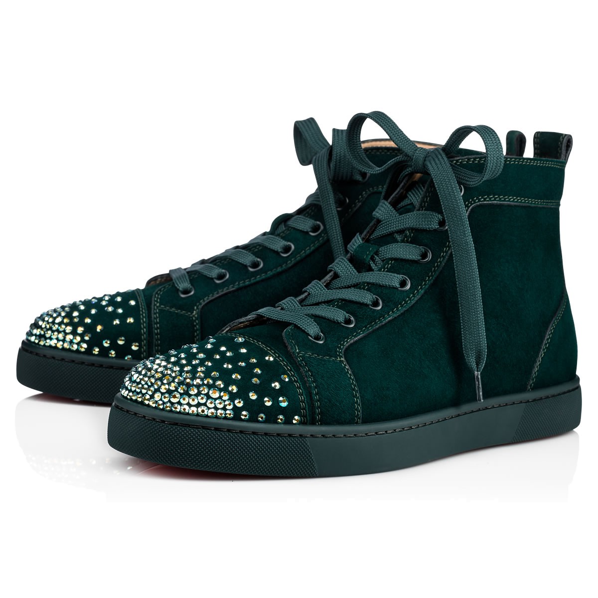 Light the way in “Lou Degra Flat”. This signature Louboutin hightop in ivy suede is encrusted with a Swarovski crystal dégradé detailing at the toe box for a head-turning luster.