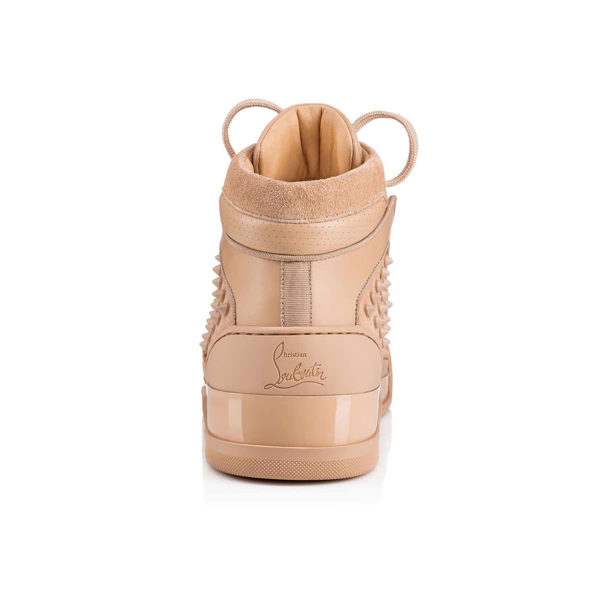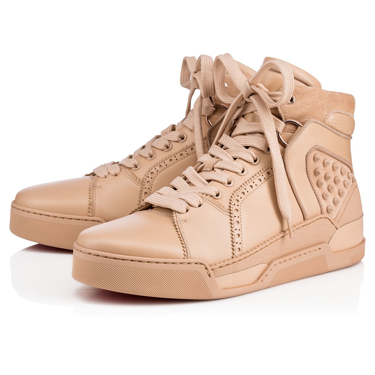 An exclusive Christian Louboutin hightop with luxurious multi-material layers, “Loubikick” takes inspiration from the ’90s basketball shoe. In a tonal nu leather mix with signature spike detailing, this pair is expertly crafted for style performance.
