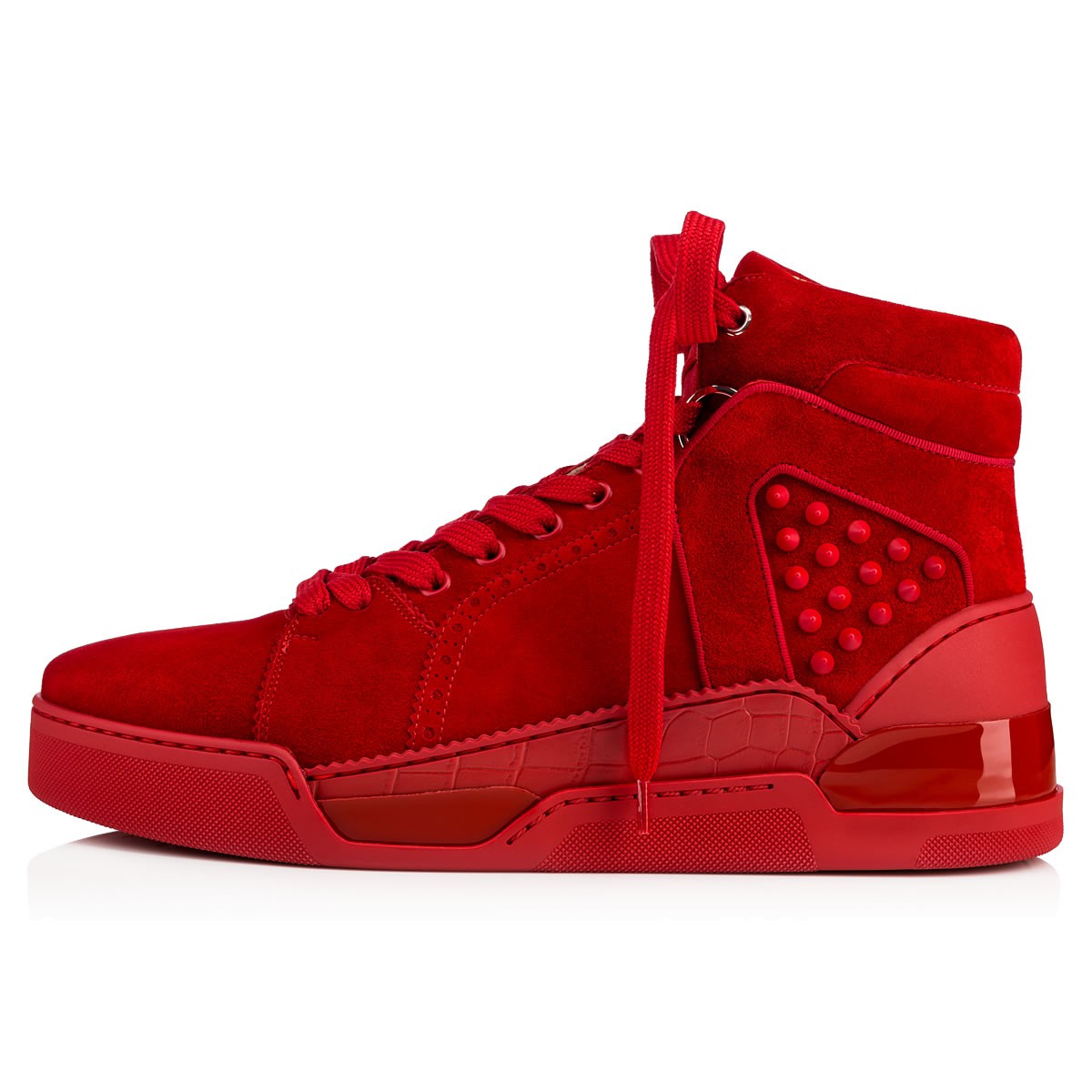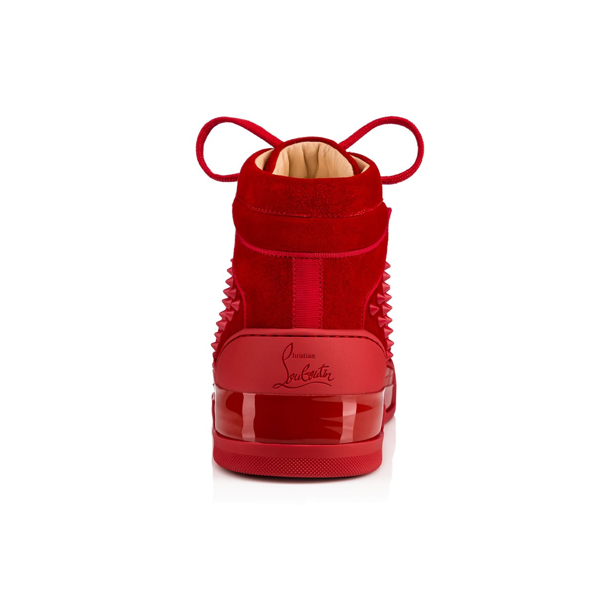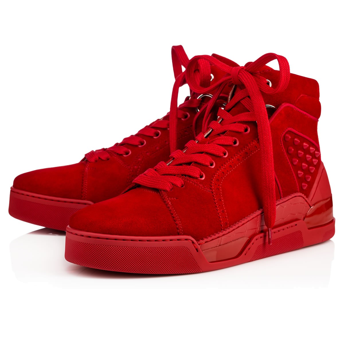 An exclusive Christian Louboutin hightop with luxurious multi-material layers, “Loubikick” takes inspiration from the ’90s basketball shoe. In a vivid flamenco suede and leather mix, this pair is expertly crafted for style performance.