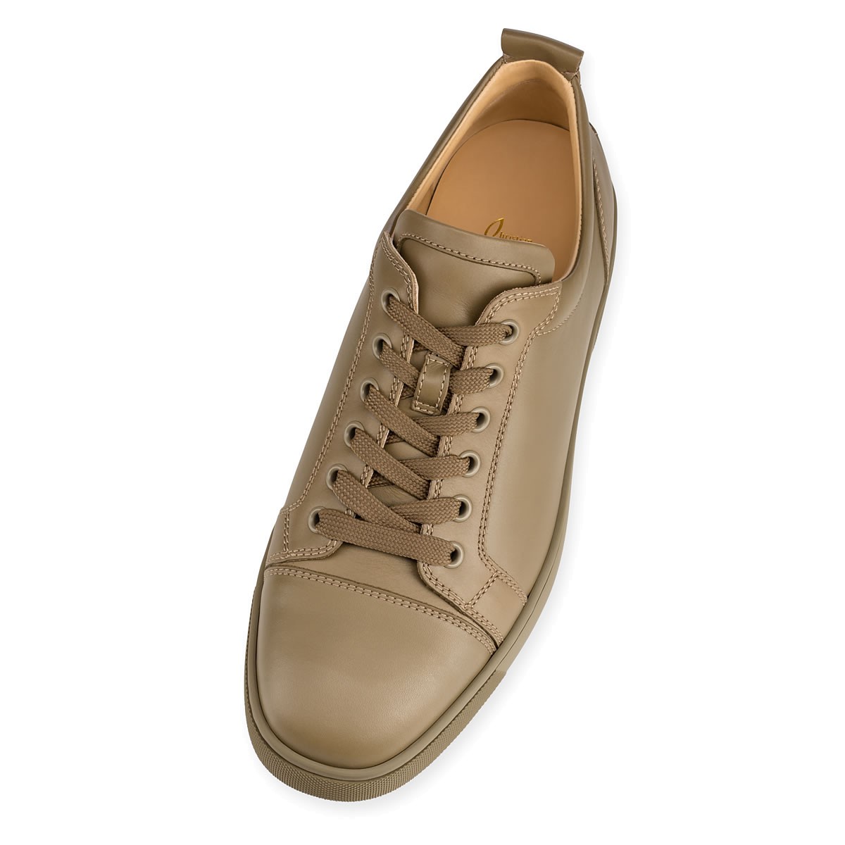 For those who prefer to keep a low profile, “Louis Junior Flat” is your gateway into the world of Louboutin. In understated poivre vert leather, this lowtop trainer gets you from A to B in ultra-comfortable red sole style.