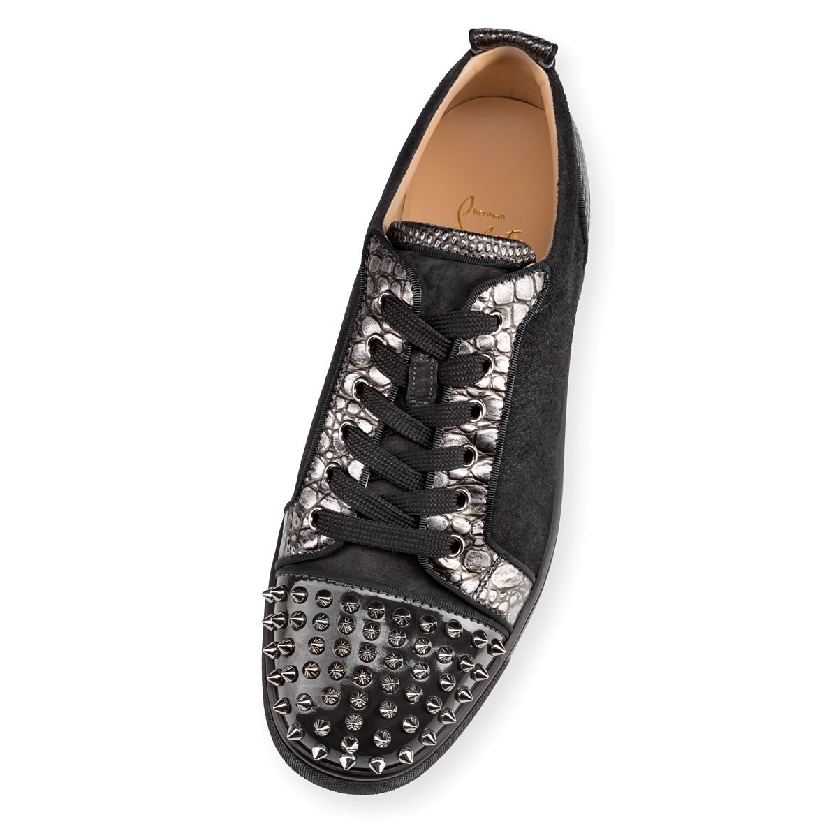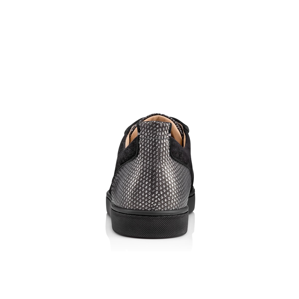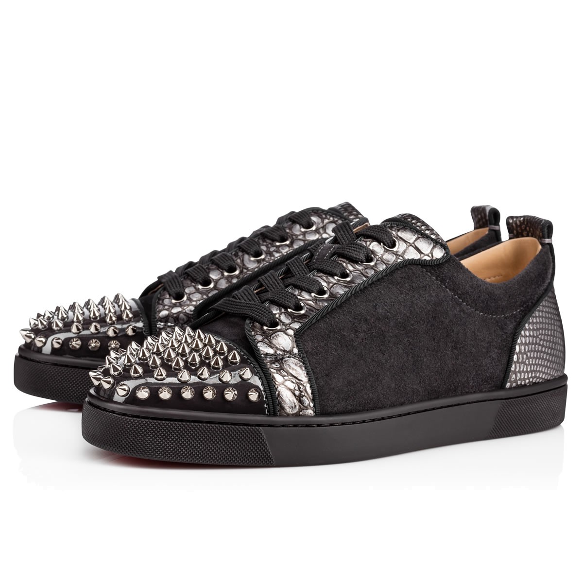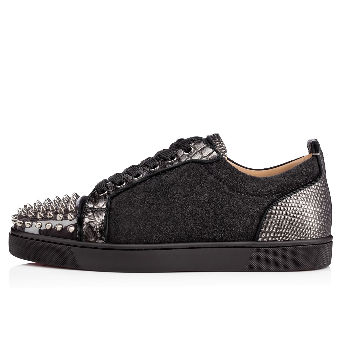 For those who prefer to keep a low profile, “Louis Junior Spikes Orlato Flat” is your gateway into the world of Louboutin. In charbon suede and this season’s crocodile & lizard embossed ‘Loubicroc’ and ‘Loubilez,’ with gunmetal spikes, this lowtop look gets you from A to B in ultra-comfortable, unmistakable red sole style.