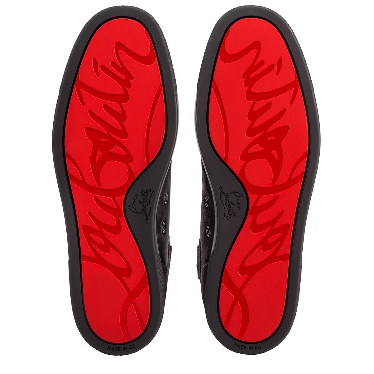 A huge hit among the red sole sneakers, “Louis Flat” is sleek, simple, and ready for anything. With the emblematic Louboutin logo2 placed on its inner side, this pair in charbon suede is perfect for the modern gentleman with a taste for luxury.