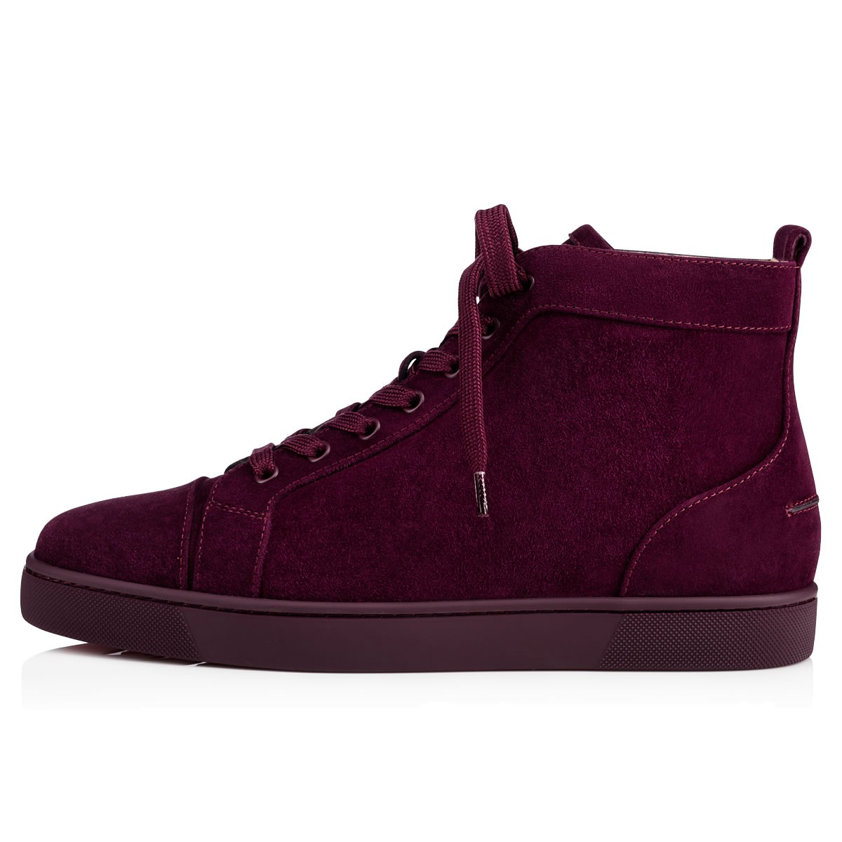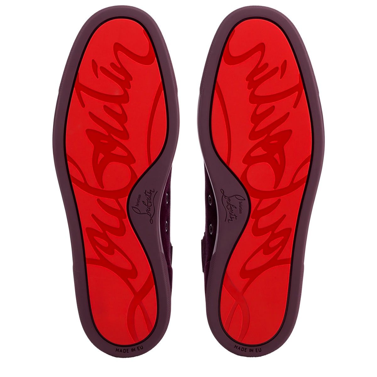 A huge hit among the red sole sneakers, “Louis Flat” is sleek, simple, and ready for anything. With the emblematic Louboutin logo2 placed on its inner side, this pair in merlot suede is perfect for the modern gentleman with a taste for luxury.