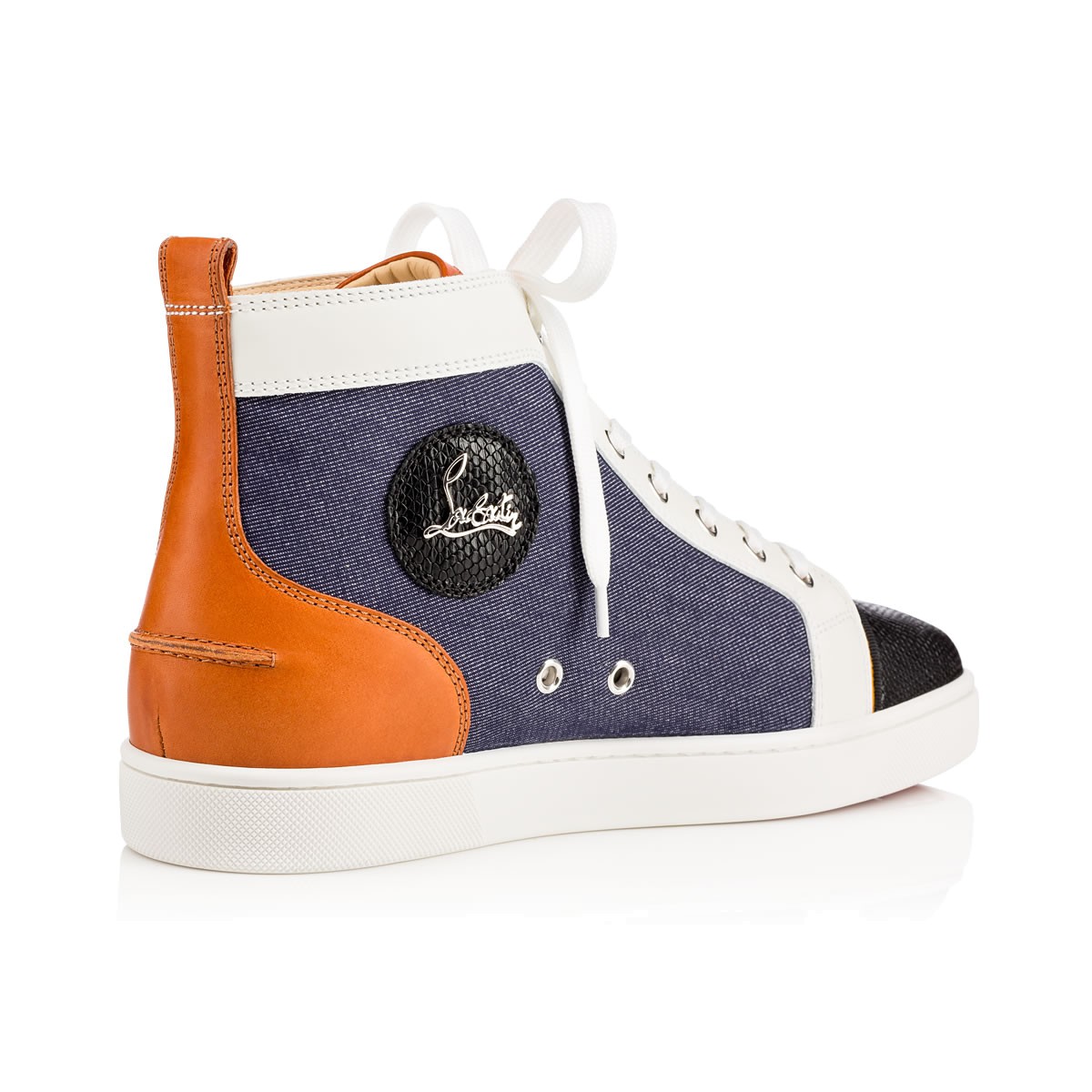 A huge hit among the red sole sneakers, “Louis Flat” is sleek, simple, and ready for anything. With the emblematic Louboutin logo2 placed on its inner side, this pair in blue denim with sobek leather trim is perfect for the modern gentleman with a taste for luxury.