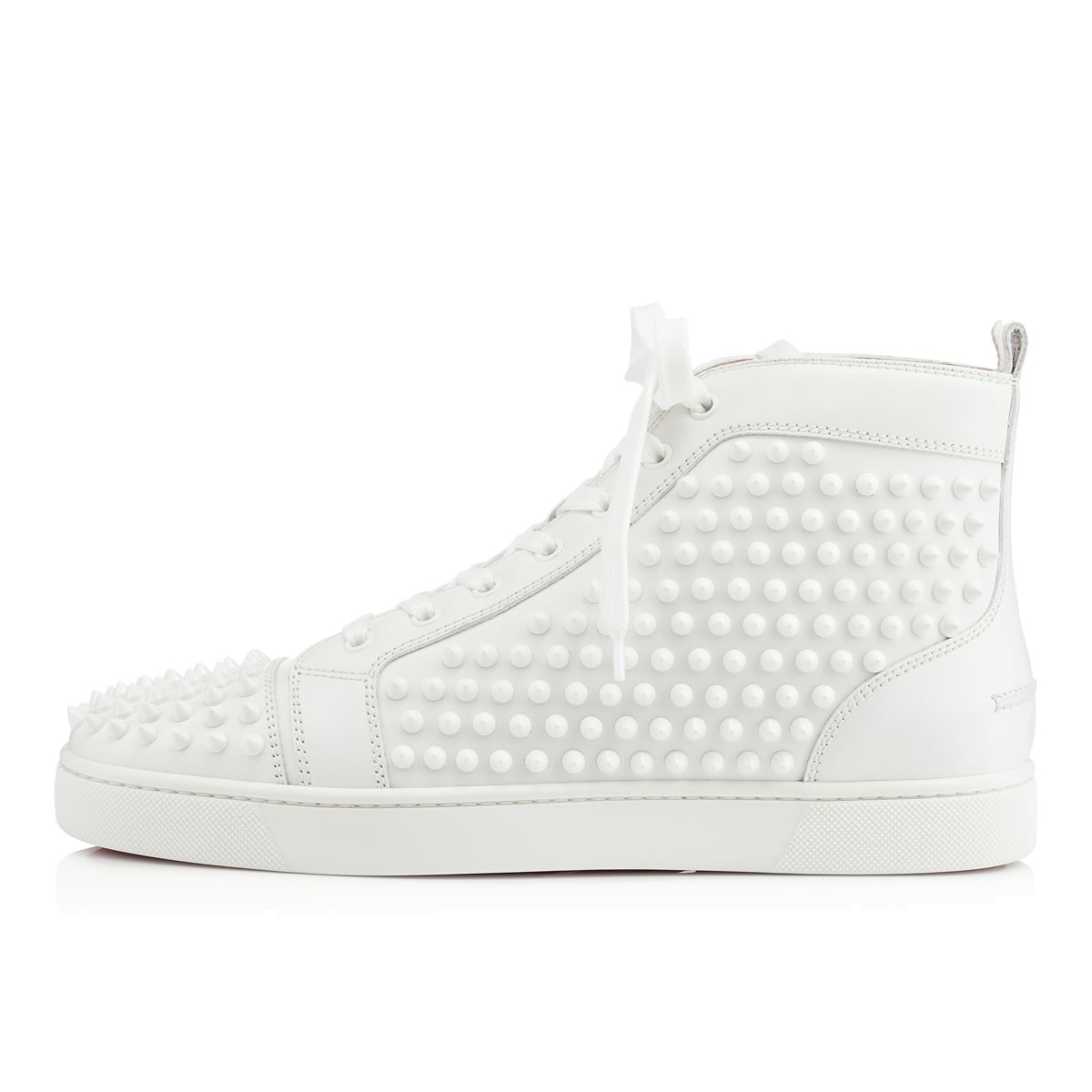 Crisp and modern in all white, “Louis Flat Spikes” is the definitive red sole sneaker. A true Louboutin original, this style is one of our most sought-after for men, so catch it if you can.