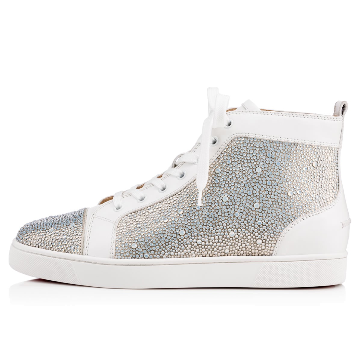 If you are looking to take your Louboutin collectsion to the next level, “Louis Strass” is where you start. This exquisite Swarovski crystal version of the signature “Louis Flat” in edelweiss lux leather ups the style ante this season.