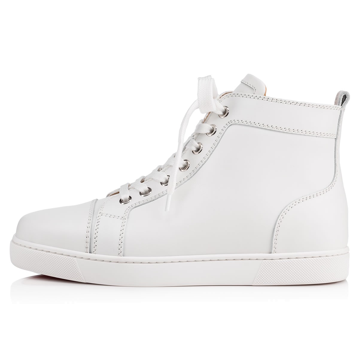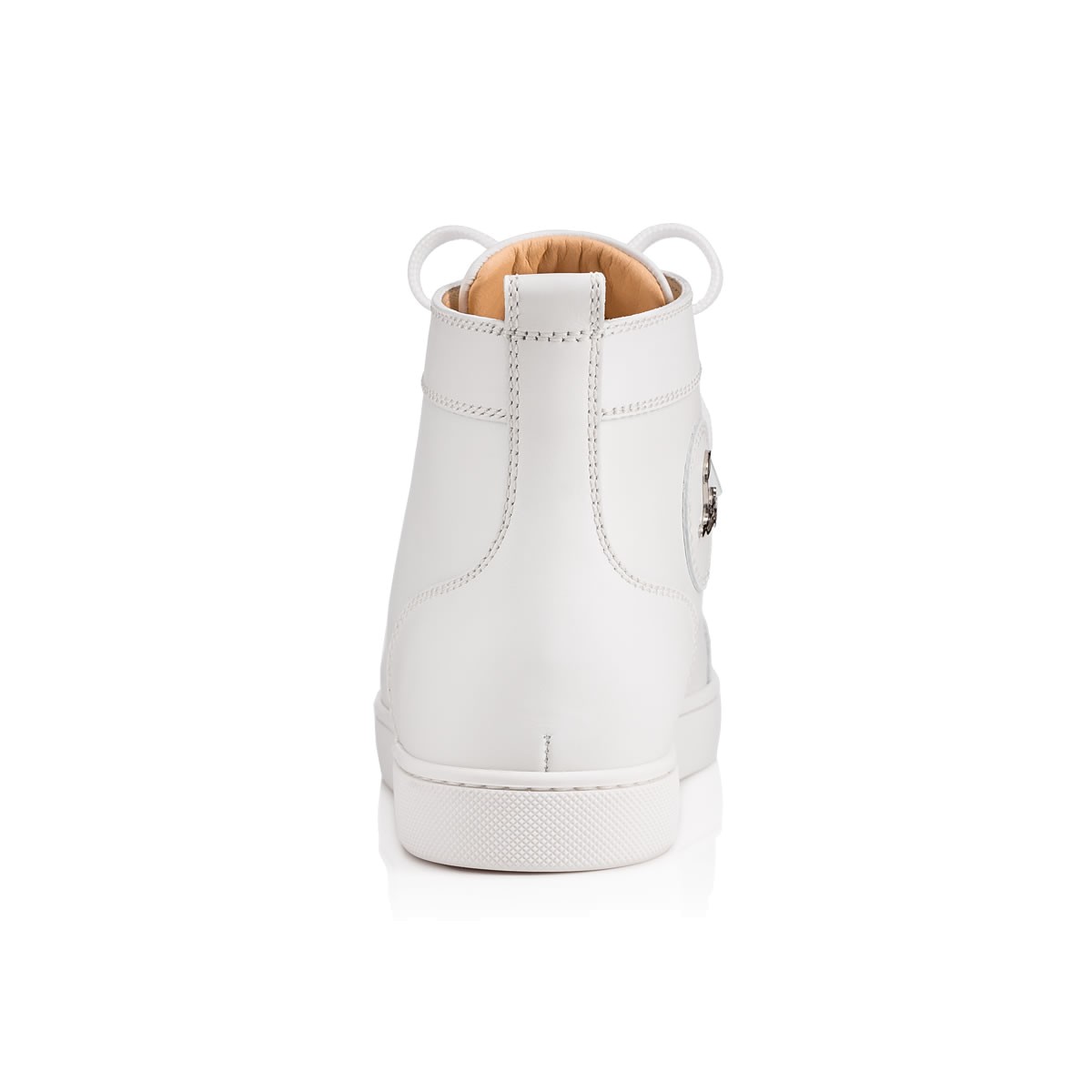 “Louis Woman Flat” is a signature Louboutin sneaker for the sporty sort. In pristine white leather, this iconic style is your anytime go-to.