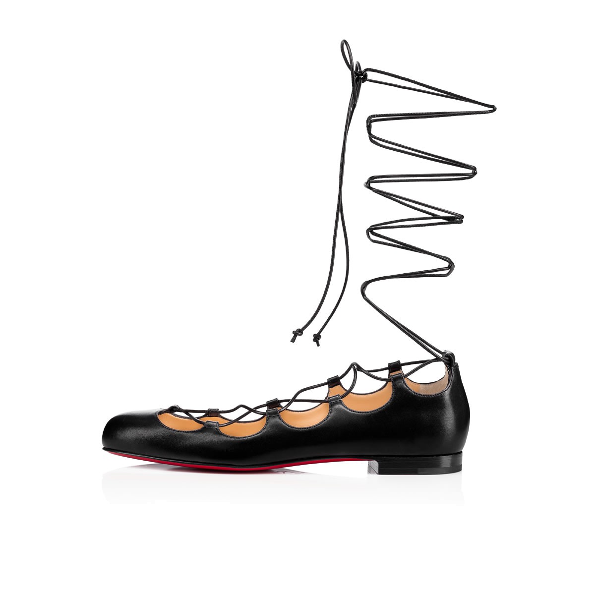 Elevate your casual ensembles in “Mary Scott Flat”. With slender leather laces that wrap elegantly around the ankle, this black leather flat is a feminine Fall/Winter staple.