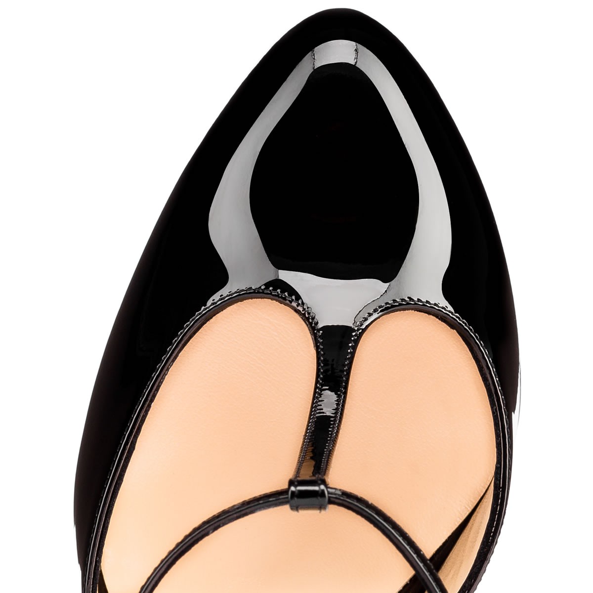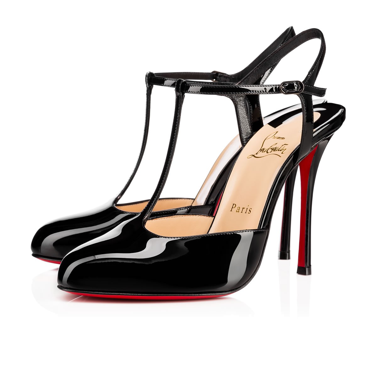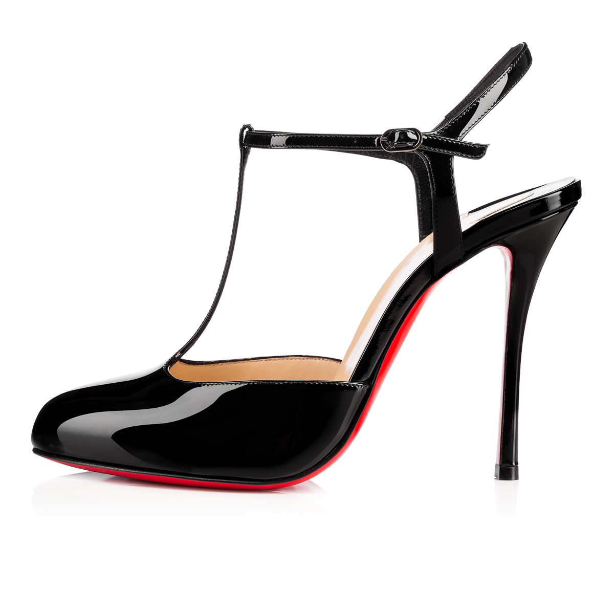 Make “Me Pam” your Spring/Summer closet classic. This basic yet beautiful round-toe, T-strap sandal in black patent leather is finished with the sexy curve of the 100mm ‘fetish’ heel.