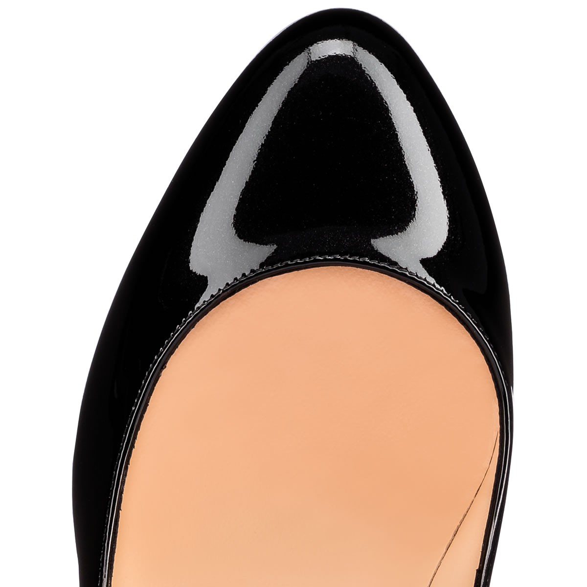 “Merci Allen” blends the “Dorissima” round toe last with a slender 85mm ‘fetish’ heel. In black sparkly patent leather, this pair is party shoe perfection.