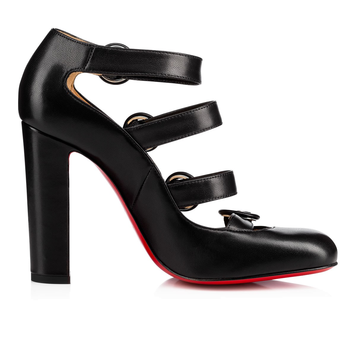 “Mistiroir” is a new look to add to your arsenal this season. In lustrous black leather, the ’60s inspired covered buckle straps dutifully climb the foot and take a stylish U-turn at the top to wrap around the ankle.