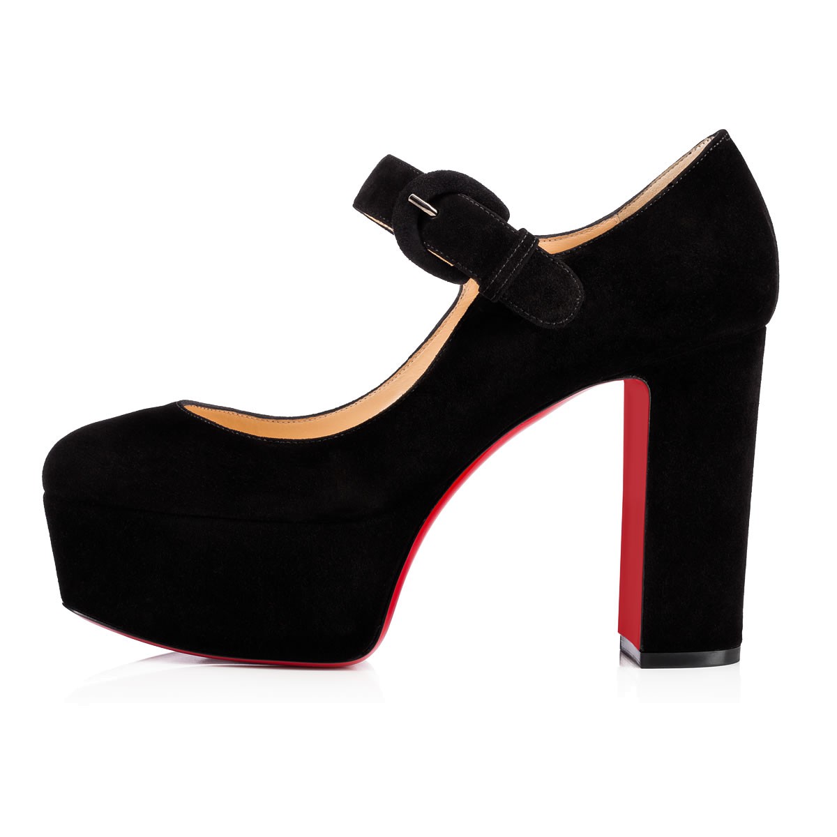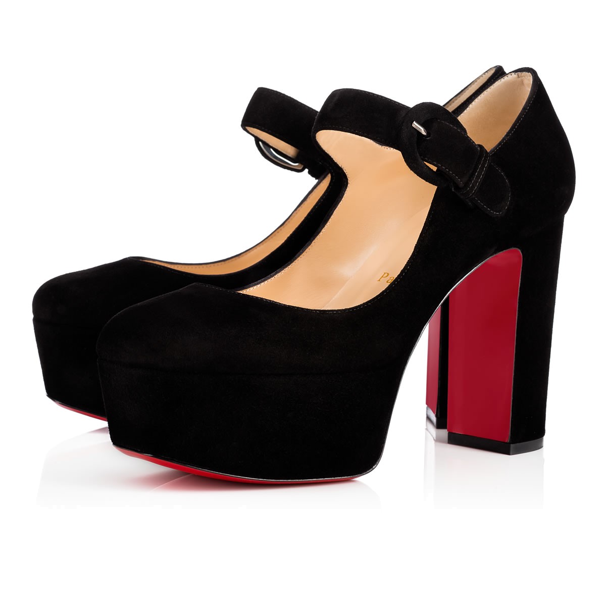 Go rocker glam in “MJ Goes High”. This ’70s inspired platform Mary Jane in black suede is an imposing silhouette for your high-impact looks.