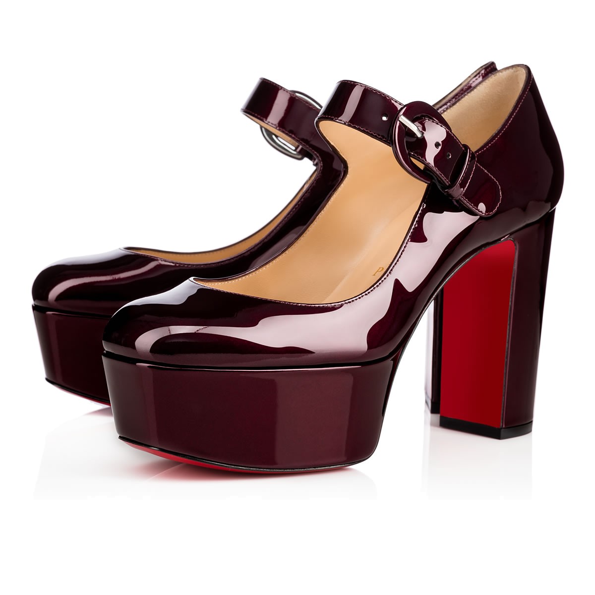 Go rocker glam in “MJ Goes High”. This ’70s inspired platform Mary Jane in merlot sparkly patent leather is an imposing silhouette for your high-impact looks.