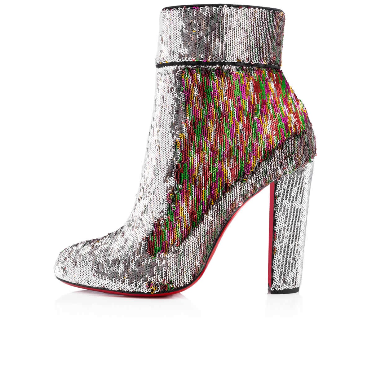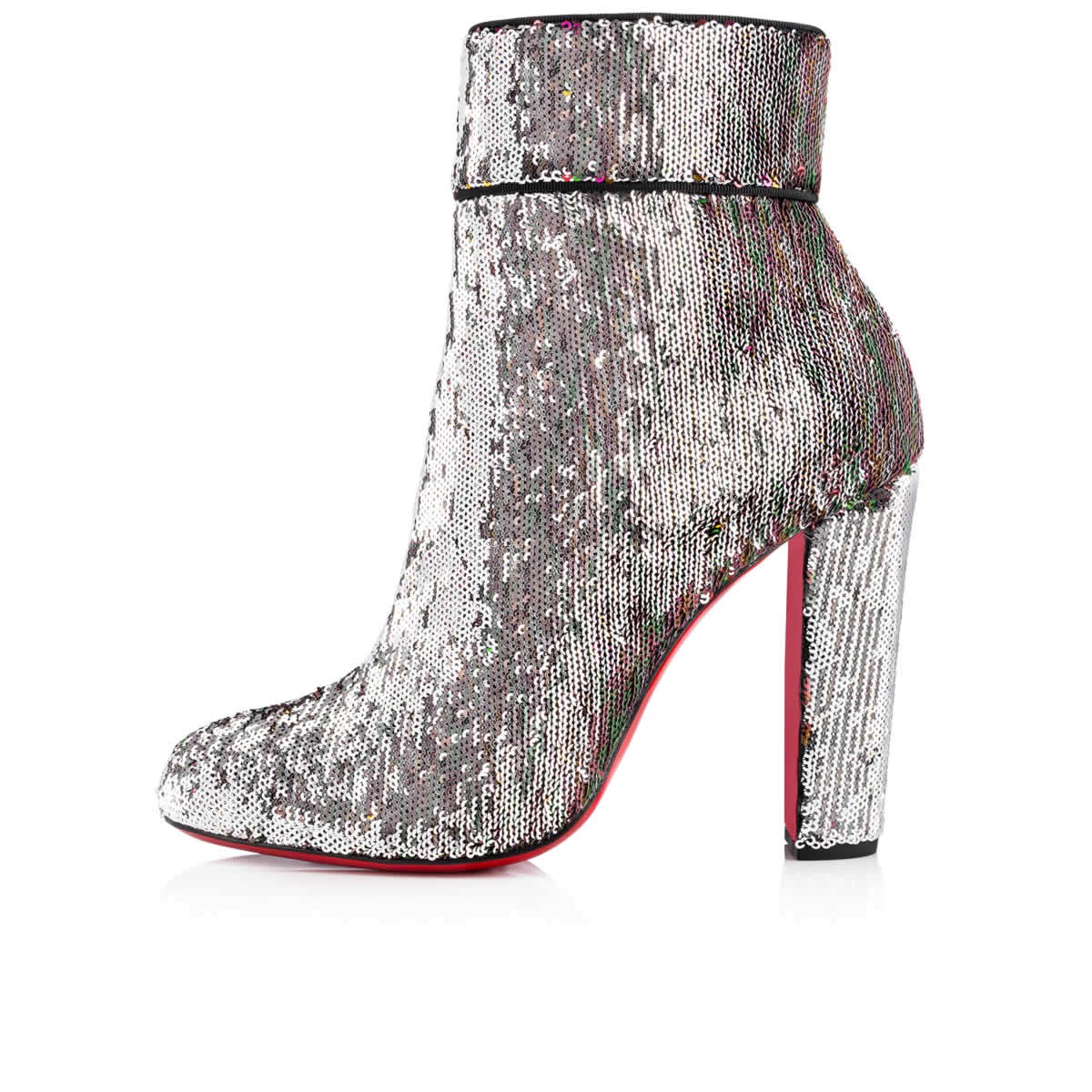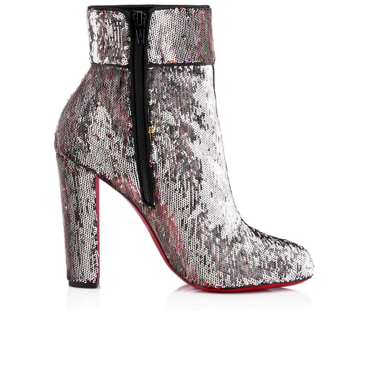 Reach beyond the basic boot this season with “Moulamax”. Cloaked in caress sequins, this illustrious 100mm side-zip booty alternates from silver to multicolored (and somewhere in-between) with a gentle graze of the hand.