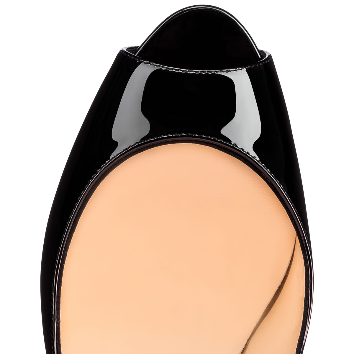 “New Very Prive” is a chic update on the signature classic “Very Prive”. Featuring a slender platform and 100mm spike heel, this peep-toe pump in black patent leather makes an alluring statement.