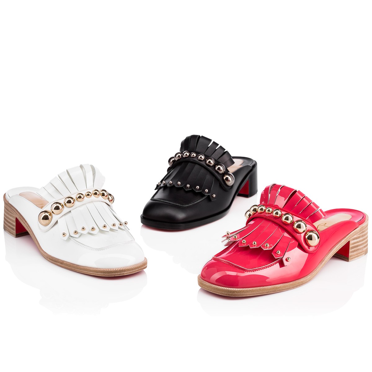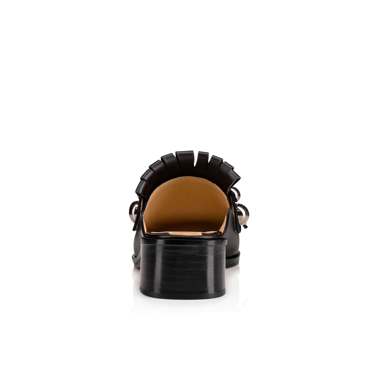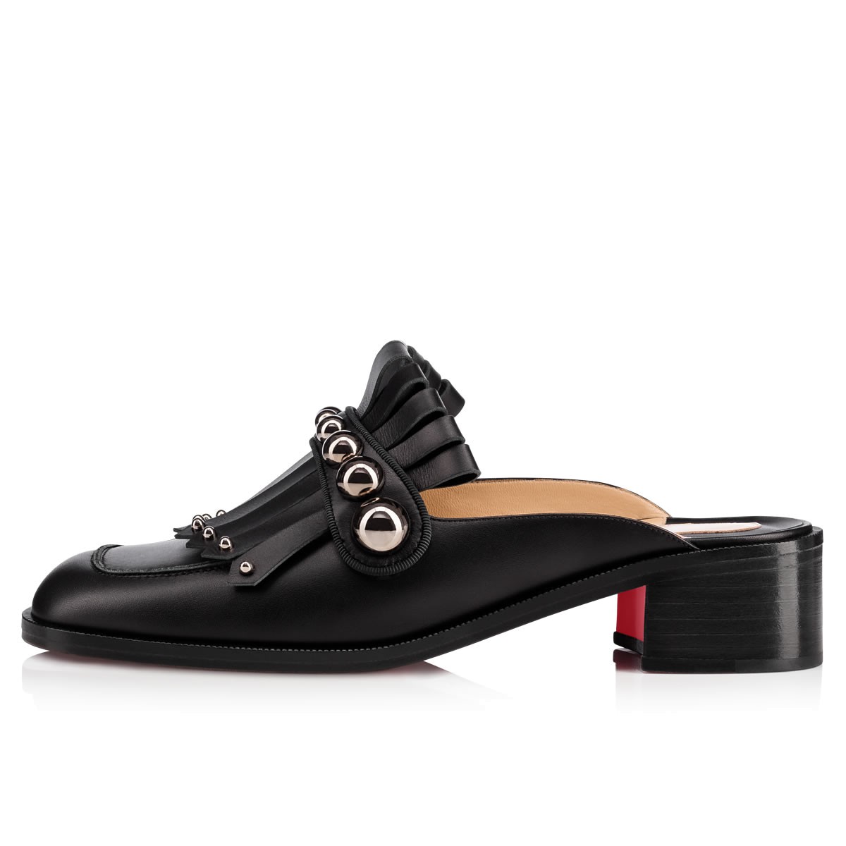 With its classic kiltie detailing and of-the-moment mule silhouette, “Octavian Mula” is a wear-anywhere essential this season. Renew your look with this comfortable 35mm slip-on in black leather and silver metal studs.