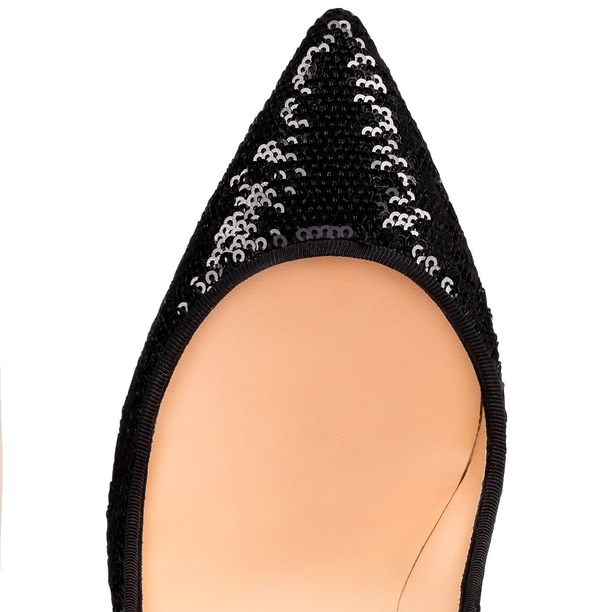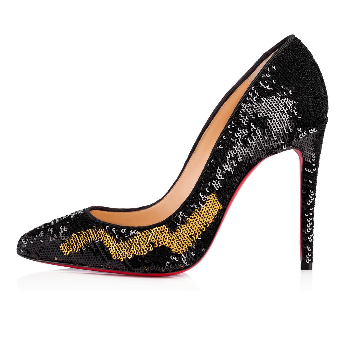 A variation on a beloved theme, “Pigalle Follies” is our number-one icon, “Pigalle,” refitted with a slightly shorter toe box and a superfine stiletto heel. The effect is an elegant silhouette with a feminine 100mm pitch. In this season’s caress sequins, the look alternates from black to gold (and somewhere in-between) with a gentle graze of the hand.