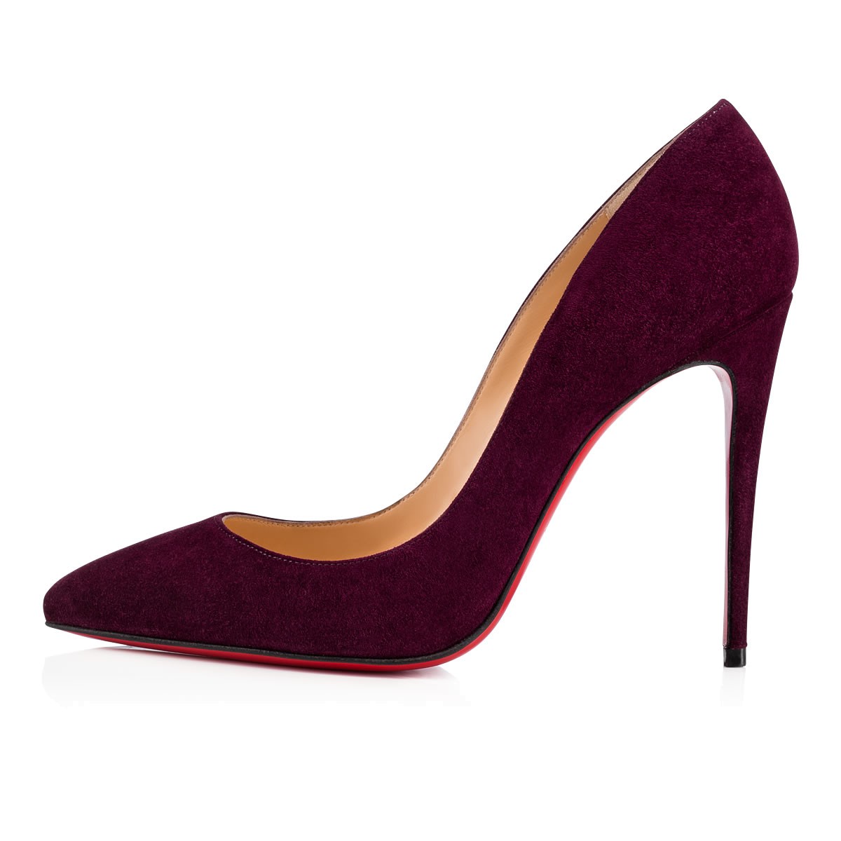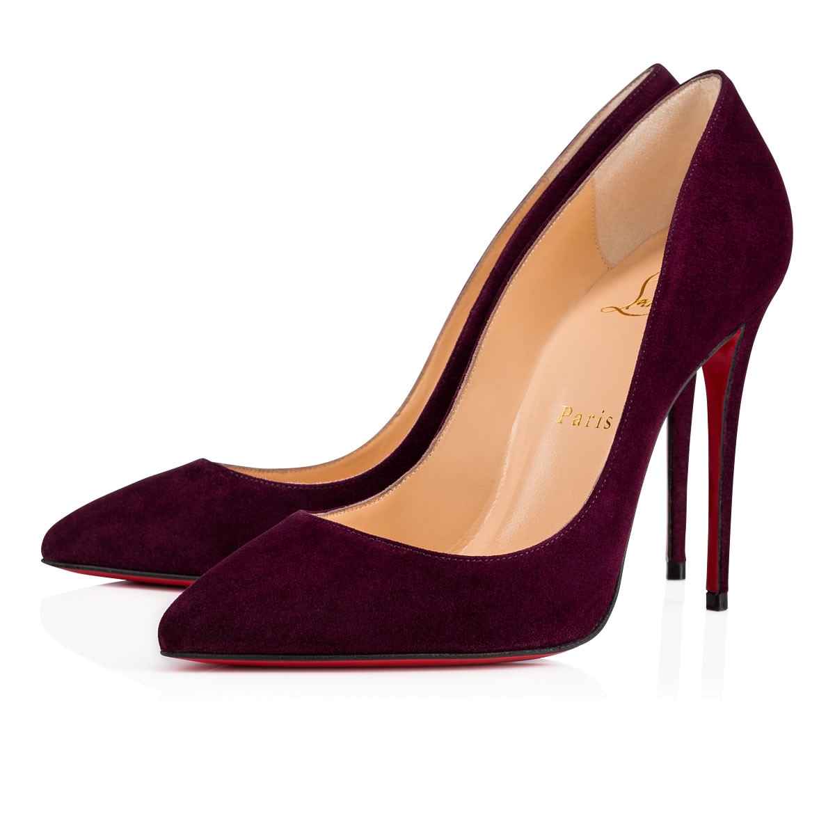 A variation on a beloved theme, “Pigalle Follies” is our number-one icon, “Pigalle,” refitted with a slightly shorter toe box and a superfine stiletto heel. The effect is an elegant silhouette with a feminine 100mm pitch. In merlot suede, she brings a tonal touch to your look.