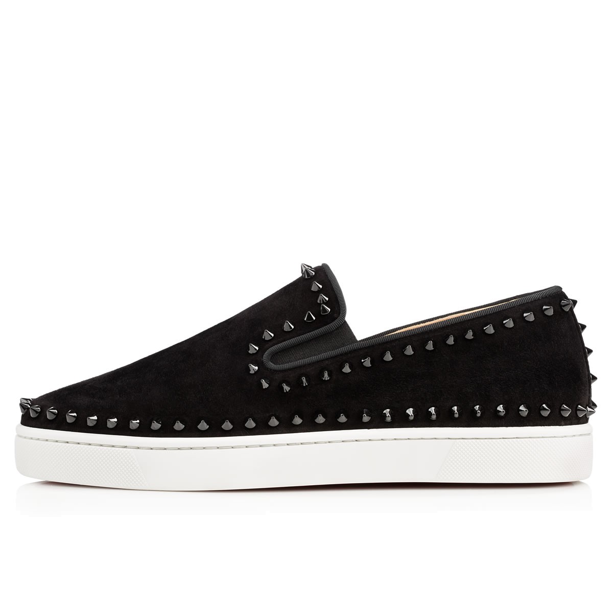 Hang loose in luxury this season with “Pik Boat,” your guaranteed go-to for days off duty. In smooth black suede and spikes, this slip-on style brings a signature Christian Louboutin touch to your more casual looks.