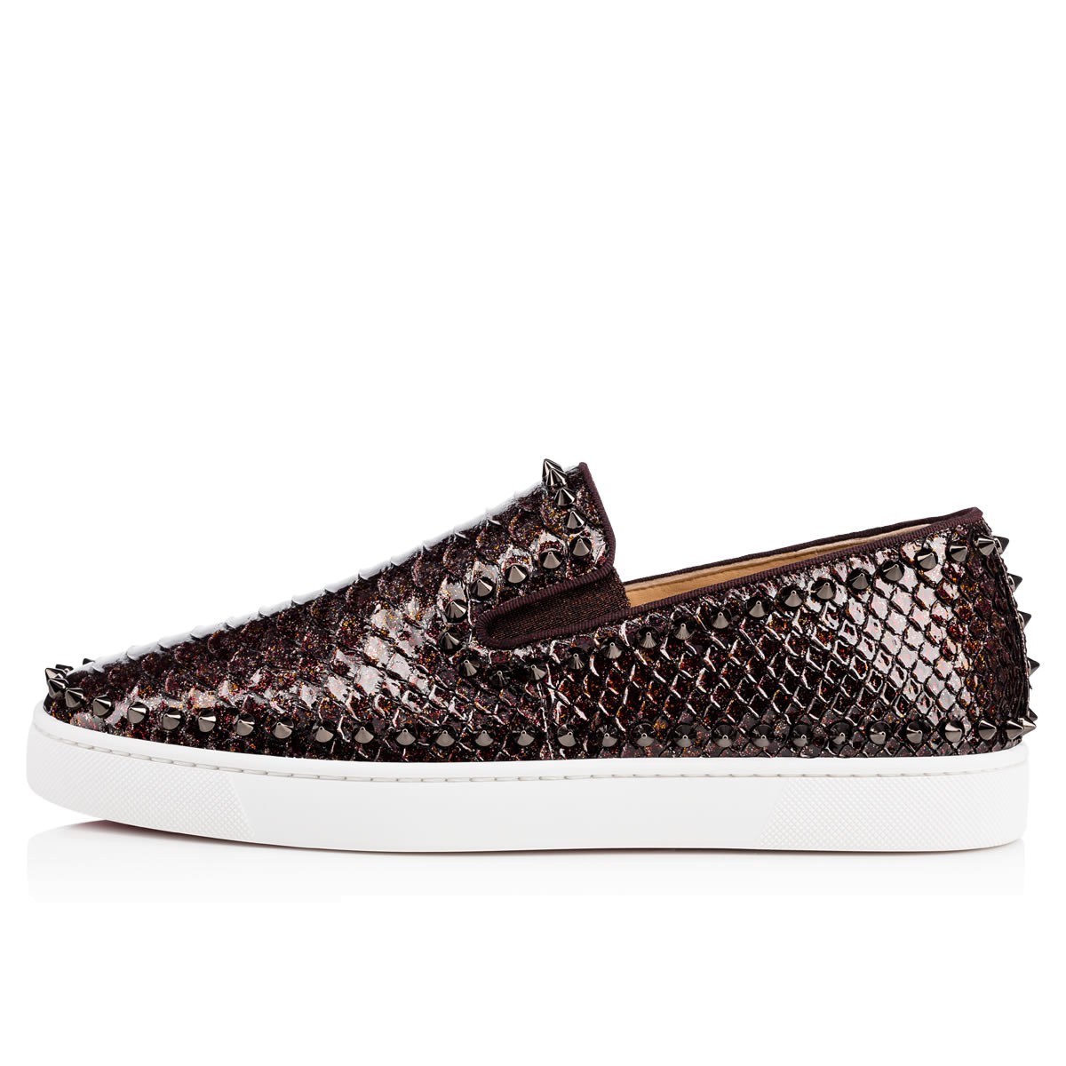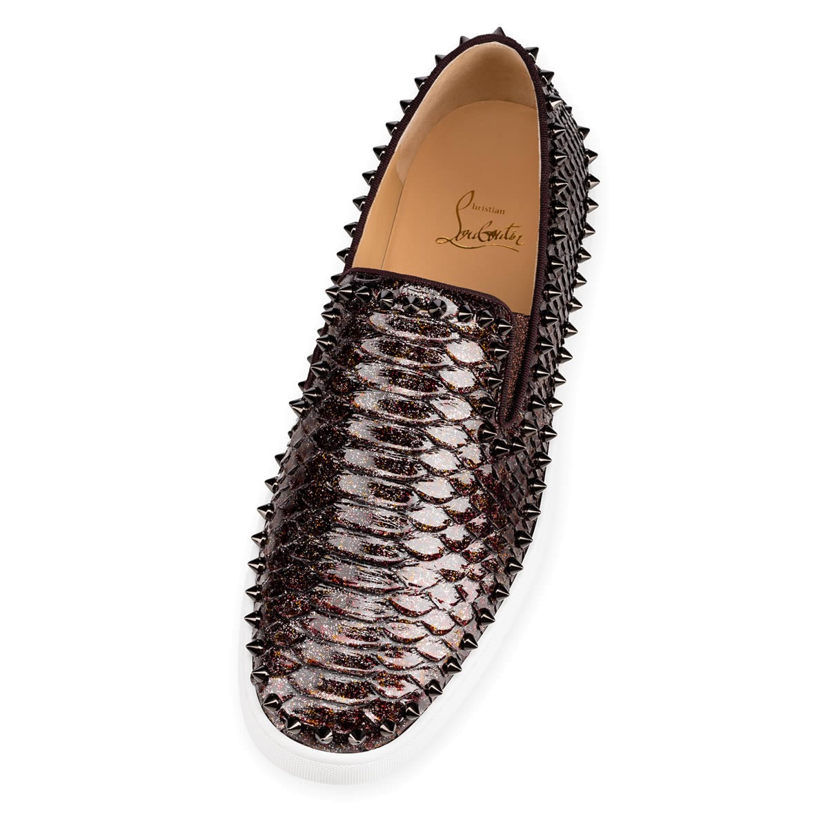 Hang loose in luxury this season with “Pik Boat,” your guaranteed go-to for days off duty. In a glistening brown glitter python and black gunmetal spikes, this slip-on style brings a signature Christian Louboutin touch to your more casual looks.