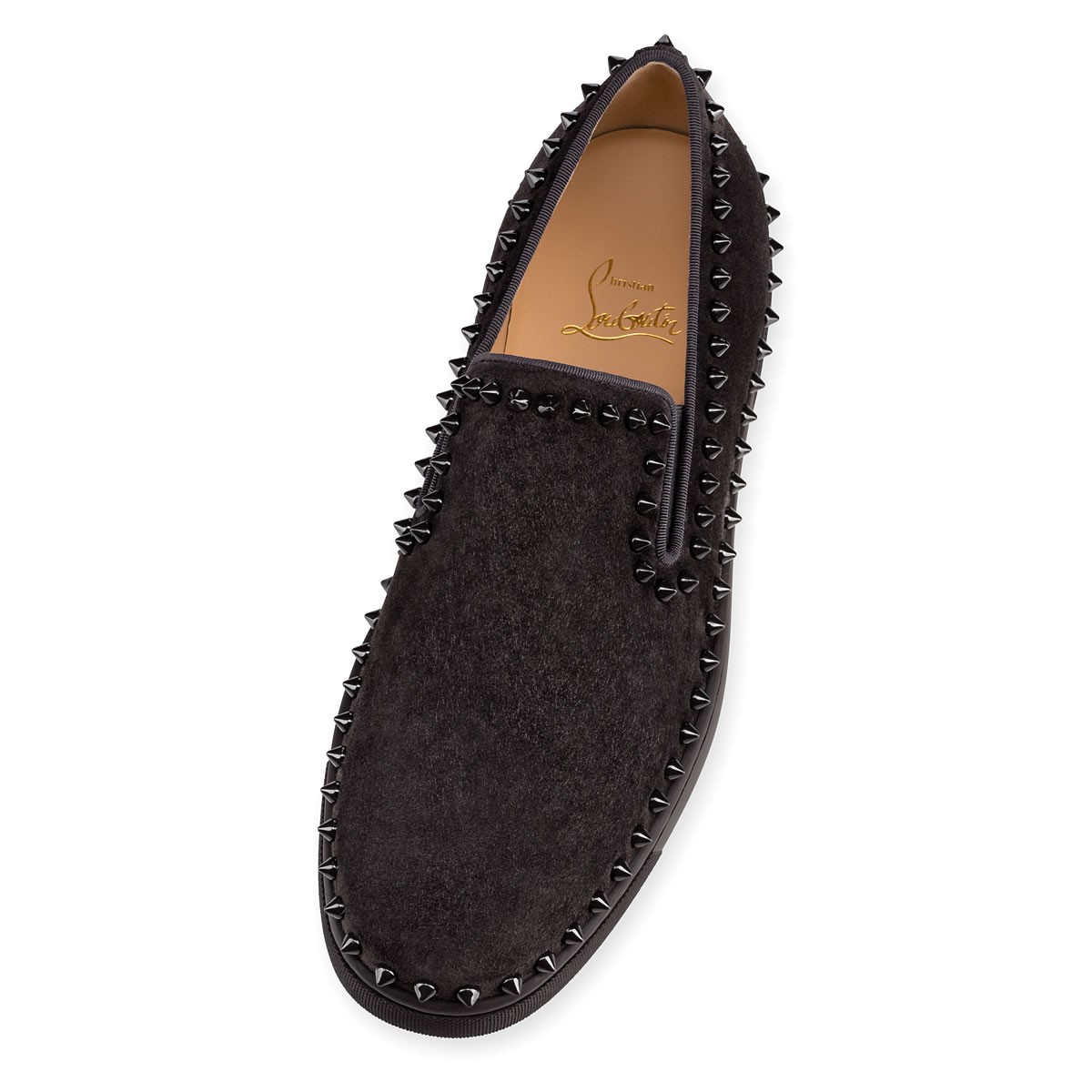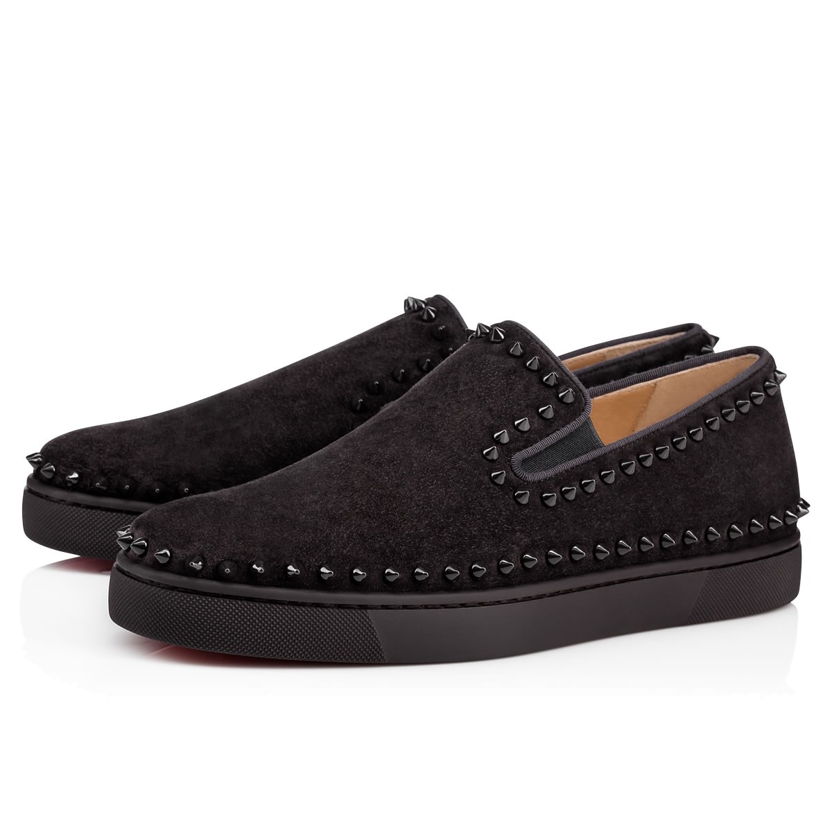 Hang loose in luxury this season with “Pik Boat Flat”, your guaranteed go-to for days off duty. In charbon suede and spikes, this slip-on style brings a signature Christian Louboutin touch to your more casual looks.