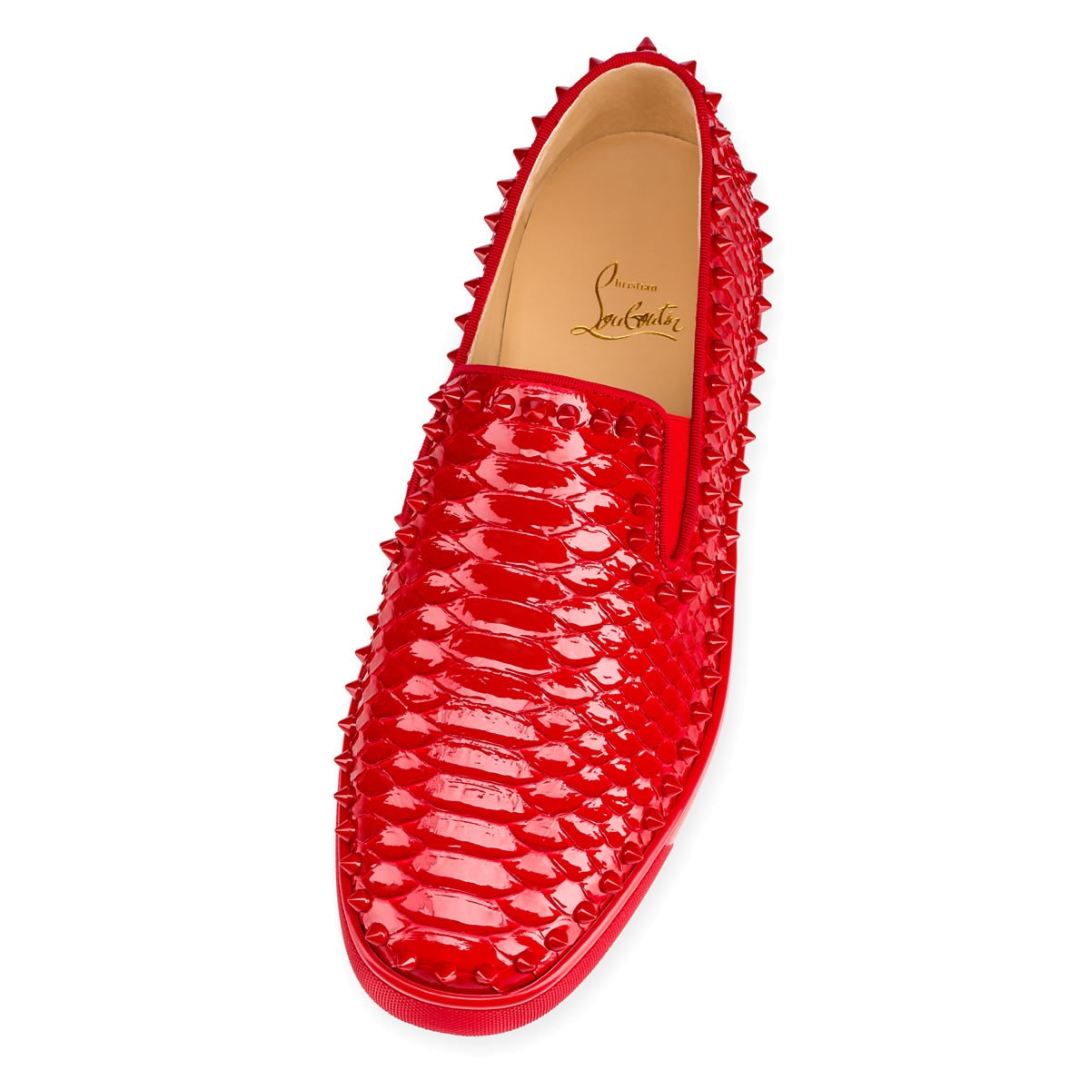 Hang loose in luxury this season with “Pik Boat,” your guaranteed go-to for days off duty. In ravishing rougissime crystal python with matching spikes, this slip-on style brings a signature Christian Louboutin touch to your more casual looks.